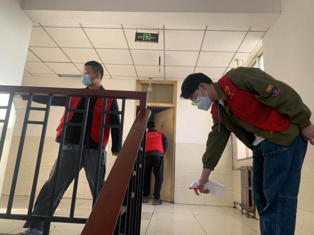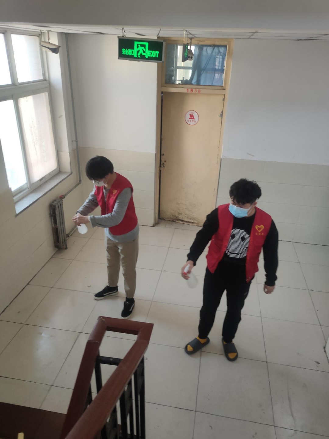 近期我市突发新冠病毒疫情,疫情防控形势严峻。为有效控制和预防新冠病毒的传播,保障学生生命健康安全,美术学院志愿者们在副书记张倩的带领下在学生公寓一号楼内和学生公寓五号楼楼下全面部署防疫安全消毒及卫生清理工作。