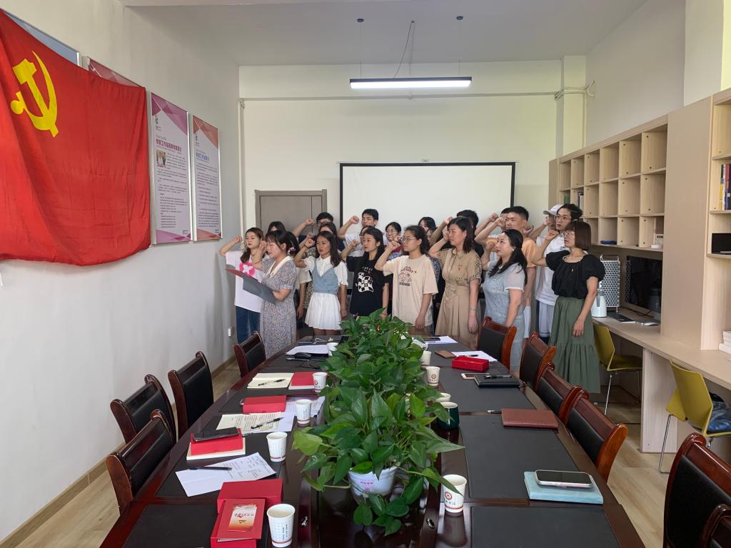 重温一遍入党誓词·怀抱一颗铮铮决心。学生党支部书记魏麟带领全体毕业生党员,重温入党誓词,面向党旗再次庄严宣誓,共同回忆入党时的铮铮誓言和奋斗决心,牢记党的宗旨和历史使命,让入党誓词成为指路明灯,让入党初心伴随今后成长。