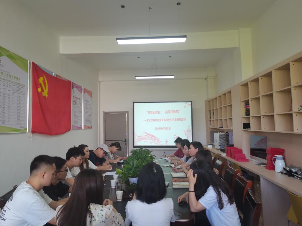 艺术学院学生党支部组织开展的“青春心向党·奋楫将远航”暨毕业生党员教育“七个一”系列活动,进一步引导广大毕业生党员在毕业后继续积极发挥党员的先锋模范带头作用,勇做走在时代前列的奋进者、开拓者、奉献者,以昂扬姿态迎接党的二十大胜利召开。