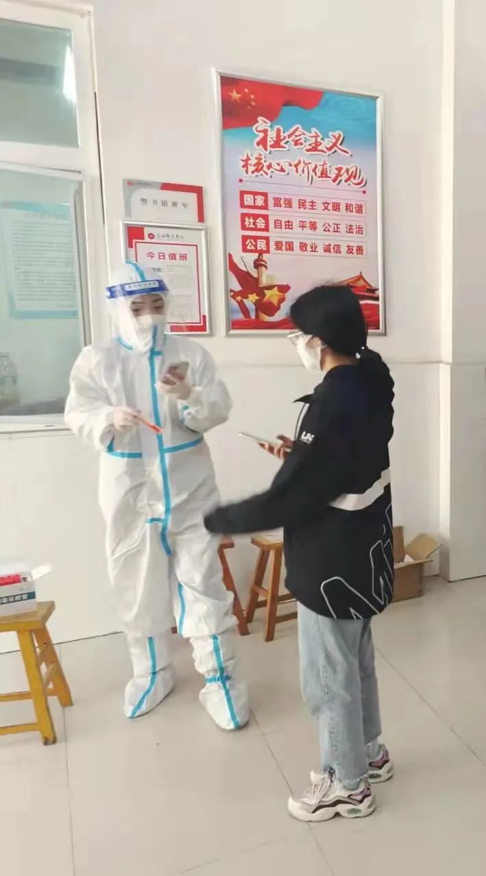 王宇翔,音乐学院20级音乐学二班学委。在防疫工作中,他担任着3号宿舍楼5楼的层长一职,日常的工作为组织本层人员做核酸、在宿舍楼口执勤检查出入证,协助楼长老师们进行一系列的排查与防护工作。工作过程中他投入全身心的精力去进行工作,保证在核酸检测中不漏一。在大家都有课无法值班时,他主动请缨,早晚值班。防疫工作之外,他通过学校思政课程中汲取的养分以及在专业课程中积累的能力,在老师们的指导、同学们的帮助下,创作出了一首抗疫原创歌曲《暖》来向伟大的奉献者们致敬,作品浏览量破万,并被学校官方以及沧州市各单位转载发布。