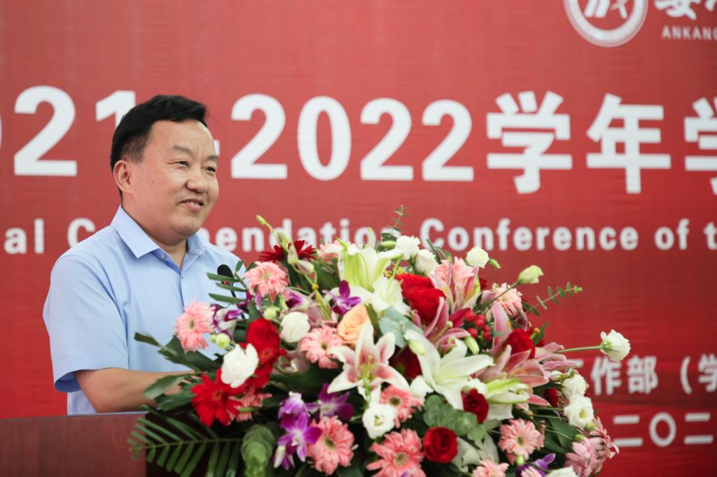 钟生海在讲话中代表学校向受表彰的先进集体和个人表示祝贺,同时向耕耘在教育教学、学生工作一线的教师表达了衷心的感谢。他强调,今年是Beat365“十四五”规划全面纵深推进、开启高质量发展的起始之年。在全校师生员工的共同努力下,学校的教育教学质量稳步提升、三全育人体系不断健全、办学条件持续改善、立德树人成效和人才培养质量持续提升。他向同学们提出了三点希望:一是要坚守奋斗初心,担当时代使命,希望同学们用奋斗创造幸福,践行“请党放心 强国有我”的誓言。二是要坚定理想信念,树立报国之志。希望同学们立大志、明大德、成大才、担大任,在积极进取、工于谋势的主动作为中,切实担当起伟大时代赋予青年人的责任,为祖国的繁荣昌盛贡献自己的力量。三是要坚持勤学善思,砥砺笃行致远。希望同学们以饱满的精神,高昂的斗志,奋发图强,顽强拼搏,以卓越的表现迎接党的二十大胜利召开。