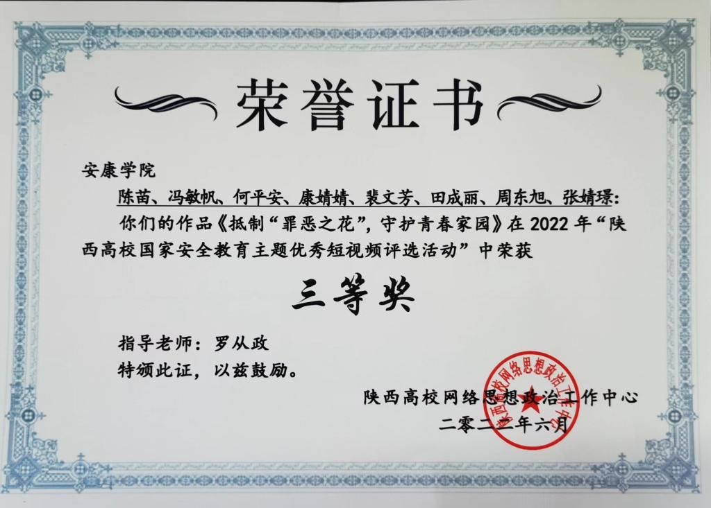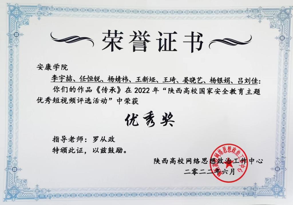 近日,由陕西高校网络思想政治工作中心主办的“2022年陕西高校国家安全教育主题优秀短视频评选活动”结果揭晓,Beat365易班发展中心推荐的学生作品《抵制“罪恶之花”,守护青春家园》《传承》分别荣获三等奖和优秀奖。