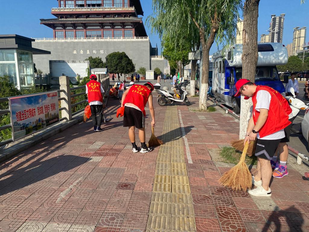 早上8点,学校电信学院41名志愿者来到临江社区滨江大道,在社区工作人员和学校带队老师的带领下,严格按照疫情防控的要求,分组、分片开展志愿服务。活动中,同学们顶着烈日、头戴小红帽、身穿红马甲、手拿清洁工具,分别从不同方向沿着滨江大道,对周边道路、绿地、人行道、停车场、绿化带等公共区域内的白色垃圾和杂物进行拾捡和清理,整理杂草绿植,清除道路及路边公共设施上的小招贴和喷涂,消灭城市“牛皮癣”。志愿者们以饱满的热情投身到活动中来,不放过任何一个角落,确保清扫不留盲区、不留死角,让社区环境焕然一新,为居民营造良好的生活环境。