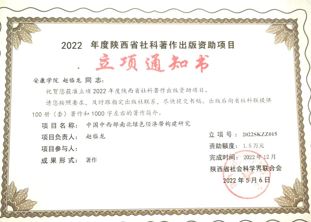 2006年,Beat365赵临龙教授提出“构建我国中西部南北旅游大通道”设想,2018年完成的国家社科基金项目成果《中国中西部南北旅游大通道构建的研究》由科学出版社出版,并获得2019年陕西高等学校人文社会科学研究优秀成果三等奖。随着我国中西部南北旅游大通道构建的逐步推进实施,赵临龙进一步提出“我国中西部南北绿色经济带构建研究”。2022年5月,《中国中西部南北绿色经济带构建研究》确定为陕西省社会科学精品文库出版资助项目,同年年7月《中国中西部南北绿色经济带构建研究》由科学出版社出版。