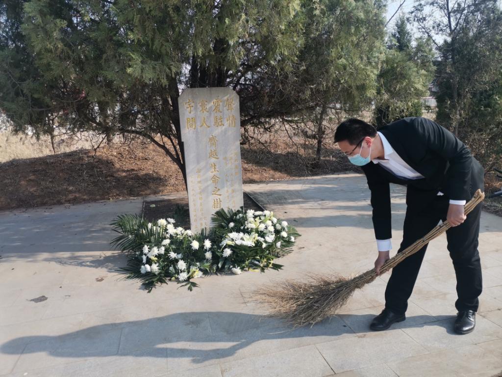 清明节是中华民族祭祀祖先的节日,也是中国人民传统扫墓活动的节日。2022年是我国老一辈播音艺术家、人民广播事业的第一位著名男播音员齐越先生诞辰一百周年。4月4日上午,值此清明时节,太阳集团tcy8722网站齐越传媒学院开展清明纪念活动。教师代表贾溥畅、邢禹岙以及姜庄子吉庆小学部分学生来到沧县姜庄子村扫墓,追忆逝去的老一辈播音艺术家,向为人民广播事业做出巨大贡献的艺术家致敬;表达我们深切的缅怀之情,以此纪念长眠在这里的齐越先生。