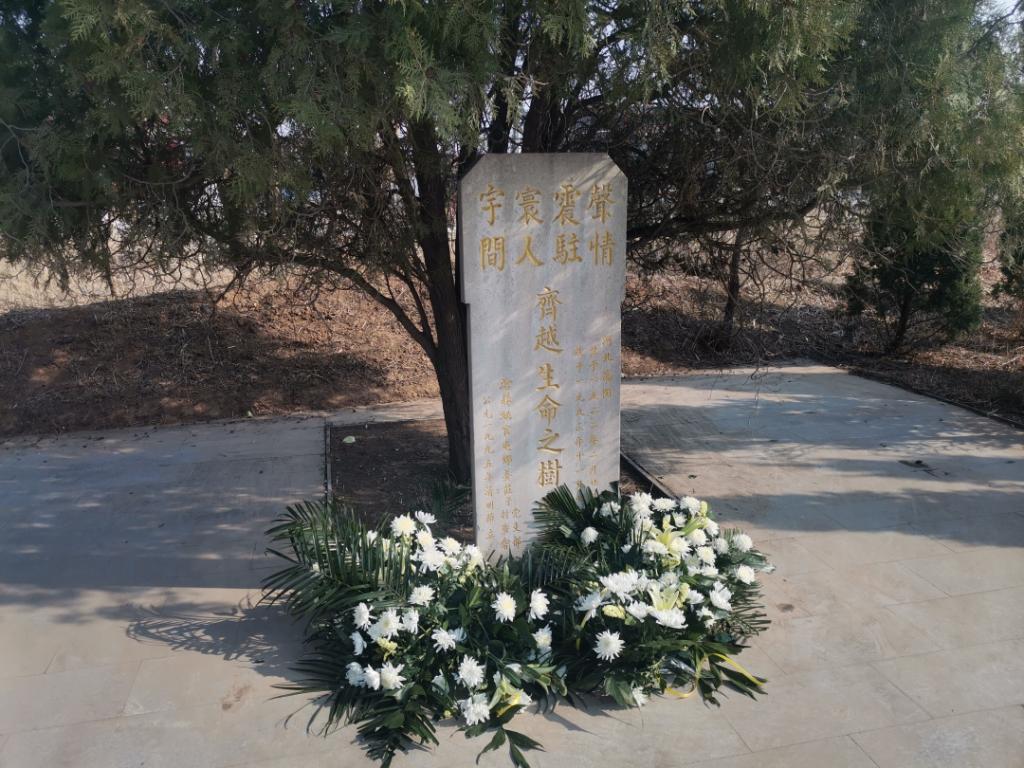 师生们怀着无比崇敬的心情,在这里举行庄严仪式。扫墓活动开始,贾溥畅老师和邢禹岙老师敬献花篮。