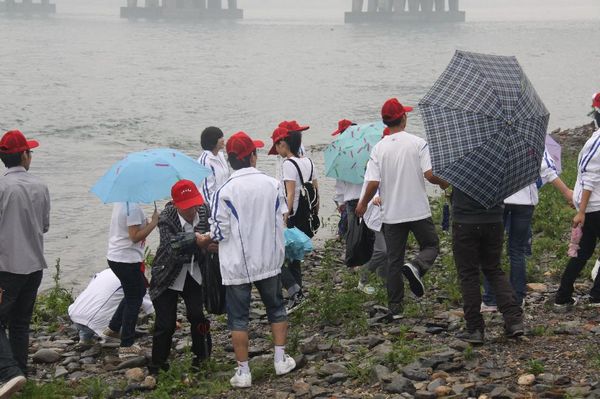 仪式结束后,参加本次活动的领导、干部职工和环保志愿者冒雨对划分区域内的垃圾进行了清洁整理。