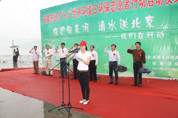 日前,由我院和安康市环保局共同主办的纪念“六·五”世界环境日暨“保护母亲河 清水送北京 我们在行动”环保志愿者活动启动仪式在汉水文化园龙舟节主会场隆重举行,市人大常委会副主任胡凯庆,市政协副主席徐铁军,Beat365唯一官方网站党委副书记胡鸿晓,市宣传部副部长、市文明办主任王建强,市环保局局长崔用慧,市环保局副局长阮英斗等领导出席启动仪式;来自我院中文系、化学化工系、外语系、环保社团的1000余名环保志愿者学生及安康市环保系统的干部职工参加了启动仪式并开展志愿服务活动。