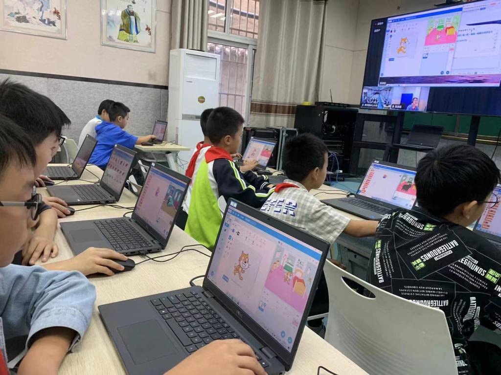 汪汉用浅显易懂的语言指导孩子们用图形化编程软件制作出了有趣的动画作品。通过信息化技术,课堂互动良好,学生兴趣盎然,圆满完成了教学任务。
