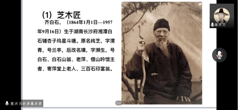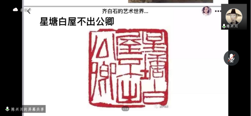 为弘扬美育思想,传播优秀传统文化,推动美术教育,进一步增进校园文化交流,培养学生审美观念和感知美、鉴赏美、创造美的能力。5月1日晚,陈兴川老师带来“洪昌美育讲堂系列讲座”第三讲——齐白石的艺术世界。本次讲座由中国画专业教研室主任康晓璇主持。期间共有在校教师、学生、社会人士等400余名艺术爱好者参与观看了此次线上讲座。