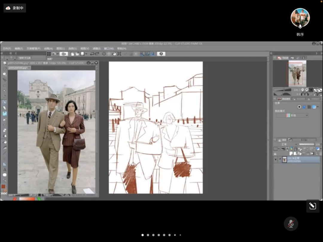 最后,韩序以电影中的经典镜头为素材案例,亲自为同学们进行了手绘示范,分别从构图、线条、比例、如何建立图层等方面进行讲解,以直观的形象,将真实的感受和美的感染力表现得淋漓尽致,以此向同学们展示了插画的魅力。