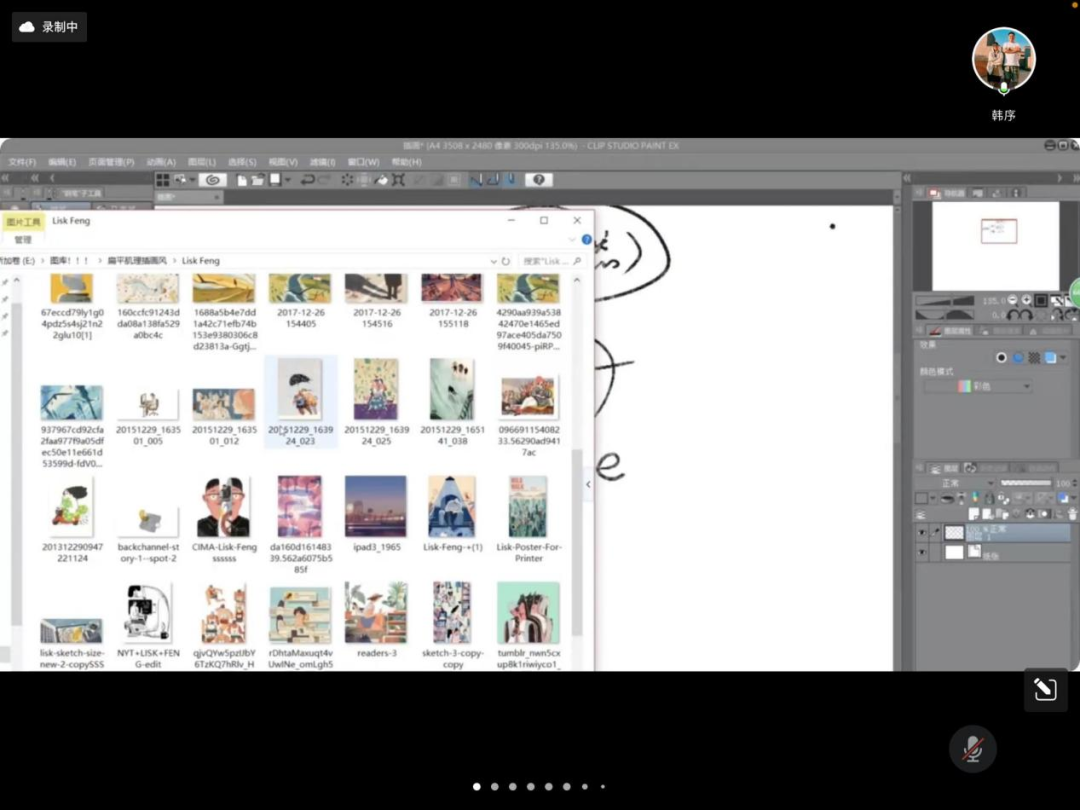 讲座中,韩序对怎样建立素材库进行了深入讲解,鼓励大家建立属于自己的素材库,创立分类严谨的文件夹,以此提高学习的效率。接着又提出了几种插画素材的积累方法,如拍照、逛展览、看电影、浏览设计类网页、观察自然风光等一系列方法。她强调,同学们要选择适合自己的方式方法进行素材积累。而后韩序向大家展示了学习中素材搜集的过程,并表示在该过程中可以提高同学们对素材的整理能力,提高同学们对美的认知,这也是提升自己审美的一个重要过程。