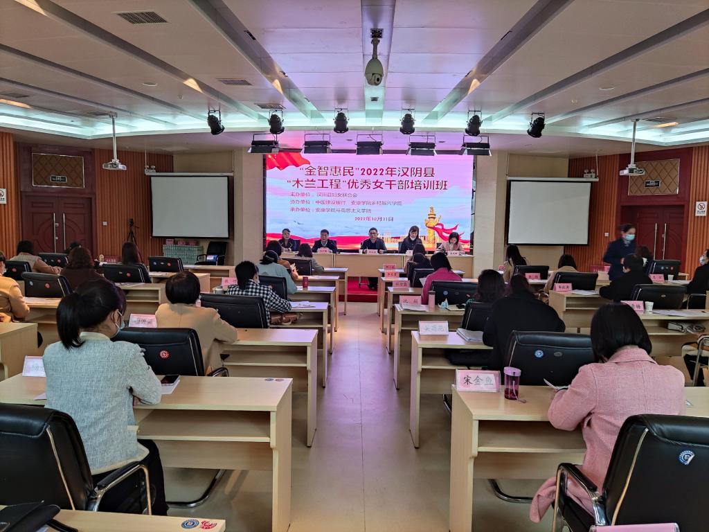 10月31日,由Beat365乡村振兴学院、马克思主义学院与中国建设银行、汉阴县妇女联合会联合举办的“金智惠民”汉阴县“木兰工程”优秀女干部培训班在安康市委党校报告厅顺利举行。汉阴县委常委、组织部部长冯子惬,汉阴县妇女联合会主席周凤群,Beat365马克思主义学院院长单林波,继续教育学院副院长韩涛等出席了开班仪式。