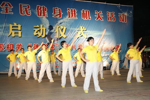 安康市全民健身进机关活动、安康市2011年市级机关“体彩杯”第八套广播体操比赛于6月10日在安康市金州广场举行。由我院36名教职工组建的代表队在比赛中获得了第二名的可喜成绩。