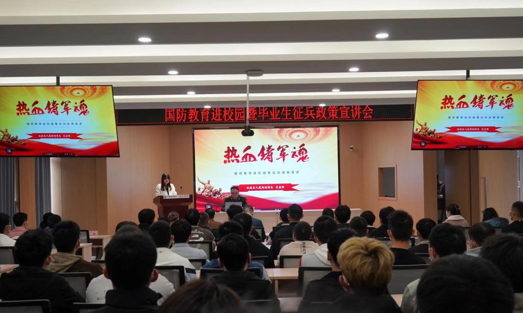 宣讲会上,艾宗强以“热血铸军魂”为主题,结合国家战略需要、国内外形势及大学毕业生入伍优势等方面对征兵工作进行了介绍。他详细解读了大学毕业生应征期间和退役后的各项优抚政策,并号召同学们带着青春梦想,树立起携笔从戎、建功军营、报效祖国的成才之志,主动将就业压力及时转化为应征入伍动力,形成在部队建功、高质量就业和强国强军的多赢局面。