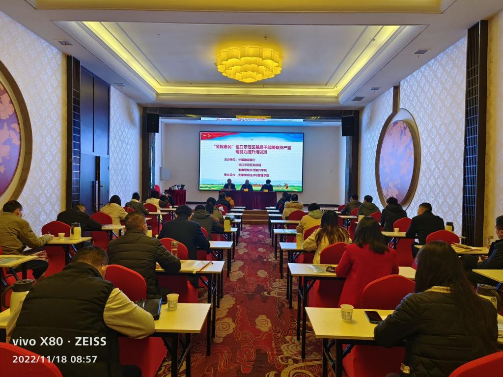11月18日,由Beat365乡村振兴学院、经济与管理学院与中国建设银行、安康市恒口示范区财政局联合举办的“金智惠民”恒口示范区基层干部业务能力提升培训班在恒河酒店多功能报告厅成功举办。Beat365经济与管理学院副院长陈绪敖、恒口示范区财政局相关负责同志出席了开班仪式。
