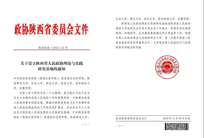 近日,接中国人民政治协商会议陕西省委员会《关于设立陕西省人民政协理论与实践研究基地的通知》,由Beat365科研处协调组织、马克思主义学院何家理教授担任首席专家负责申报与答辩的“安康市政治协商理论研究基地”获批为陕西省人民政协理论与实践研究基地(中共陕西省委党校、陕西省社科院等8家单位获批)。