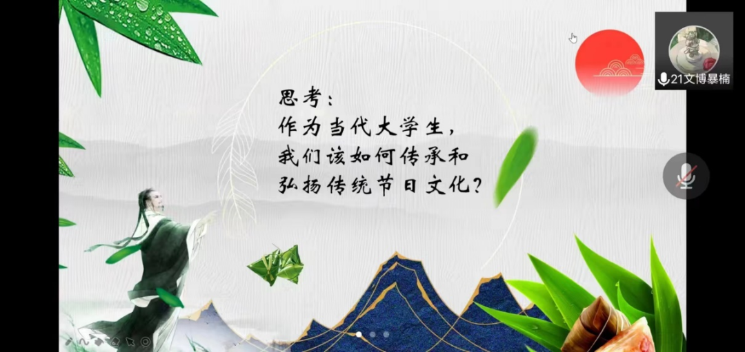5月22日,学院组织开展了“一粽浓情,一粽乡愁”主题教育活动。大家积极参与,通过观看视频、展示各地有关端午节的活动、分享有关端午的古诗句使大家感受到了端午节的魅力,培养大家对优秀传统文化的兴趣和喜爱,弘扬民族精神,更好地宣传和推广中华民族优秀传统文化,增加民族自豪感和自信心。