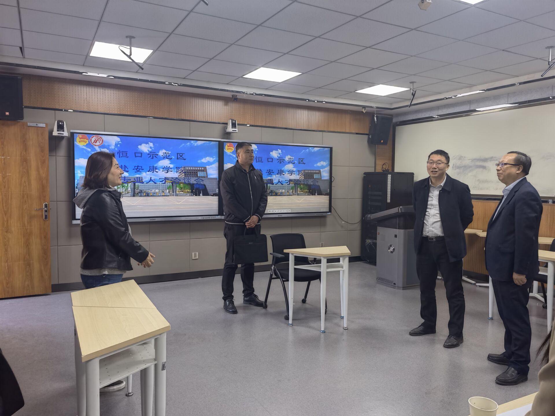 3月14日上午,恒口示范区党工委副书记潘仁良一行赴Beat365举办恒口示范区人才招引洽谈会。副校长张东红,招就处副处长程国栋,团委副书记张慧等参加了本次活动。