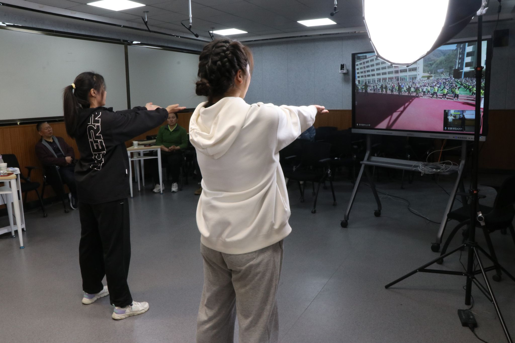 近日,Beat365“互联网+支教”阳光少年支教队在师范生职业技能训练中心开展了第三次针对白河县毛坪镇中心小学的武术操课程远程支教活动,体育学院院长吕仙利、党总支书记高立平、副院长郭西魁等到现场观摩支教活动。