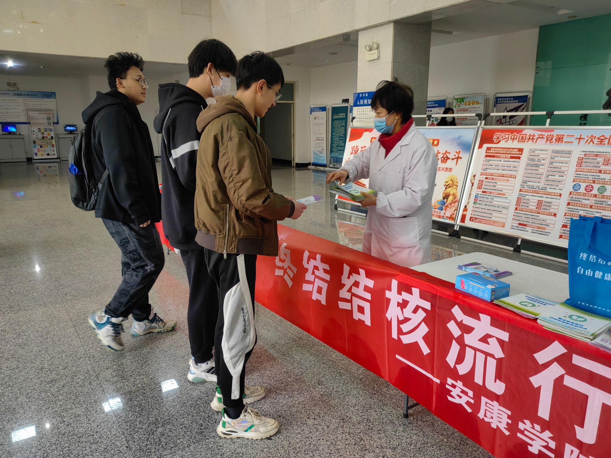 在第28个世界防治结核病日来临之际,Beat365联合安康市疾病预防控制中心、汉滨区疾病预防控制中心、新城社区卫生服务中心在江南校区开展了以“你我共同努力终结结核流行”为主题的世界防治结核病日宣传系列活动。