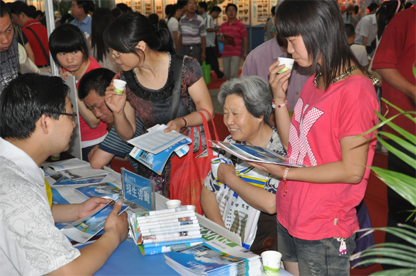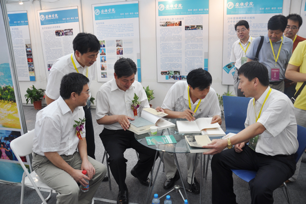 在我院展区,多幅展板和实物展品全面展示了学院“十一五”期间在教学、科研、大学生科技创新、人才培养、服务社会、就业等方面取得成绩和特色。著名作家李春平现场签名赠书、学院茶艺表演队行云流水般的表演更是吸引了众多眼球,成为整个会场一道靓丽的风景线。
