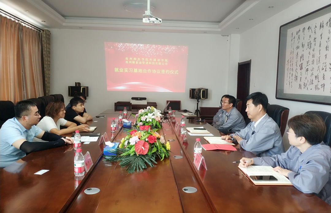 外国语学院党总支极响应教育部“访企拓岗促就业”专项行动,以保障2023届毕业生就业为目标,成立了以党总支书记陈蕊为组长,副书记刘文慧为副组长,葛佳丽、武云鹏、刘植浩、韩琳四位辅导员老师为成员的“访企拓岗”小组。近日,“访企拓岗”小组先后前往沧州隆泰迪管道科技有限公司、沧州市晓林教育培训学校县直校区访问交流,签署了合作协议,建立了就业实习基地。在访企过程中,陈蕊书记介绍了太阳集团tcy8722网站外国语学院相关专业的情况。她表示,通过走访企业,了解企业的实际业务情况和用人需求,及时调整人才培养方案,增加实践机会,才能为社会、为企业培养出有学识、有能力、有成绩、有发展的优秀人才。