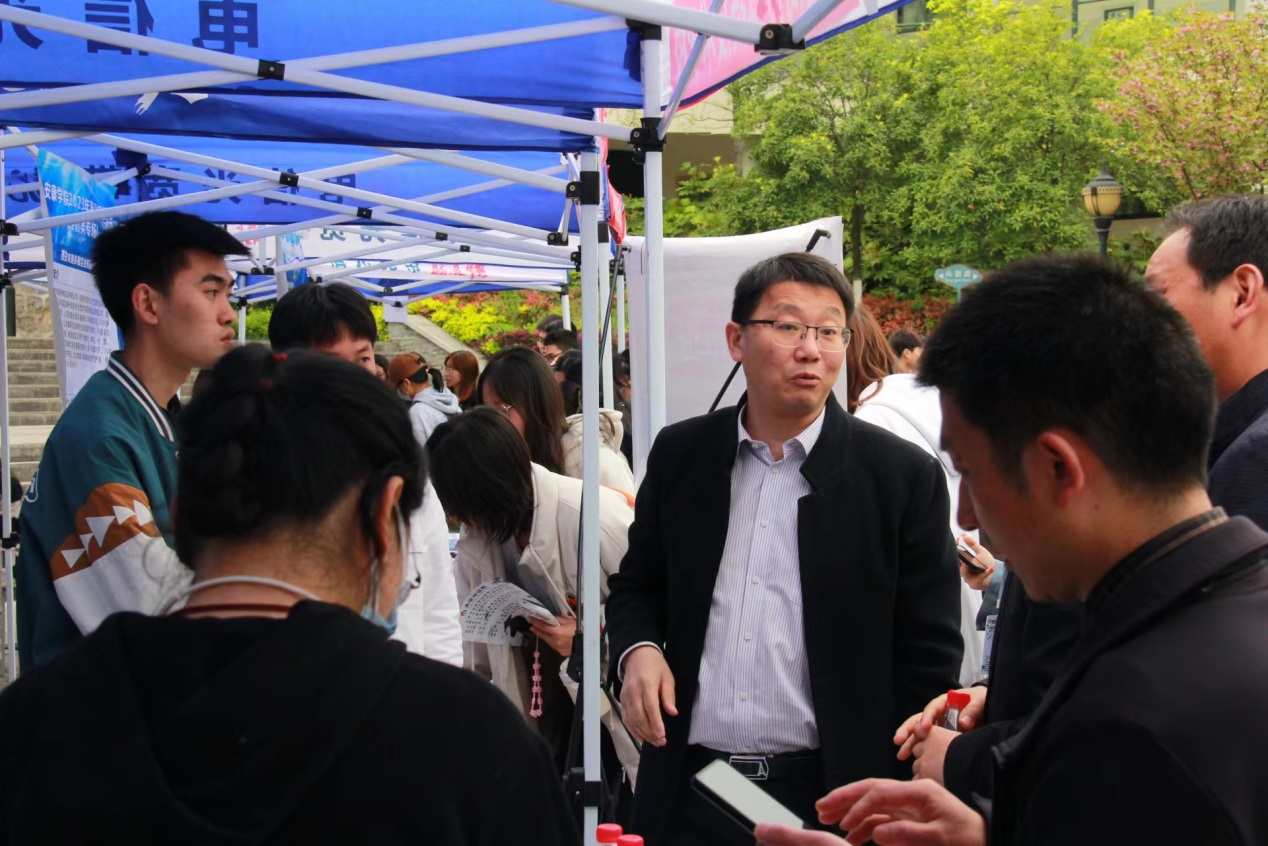 4月8日,Beat365唯一官方网站2023届毕业生春季第五场(经管类专场)招聘会在江北校区举行,来自全省各地50多家优秀企业到会招聘人才,副校长张东红出席会议并致辞。