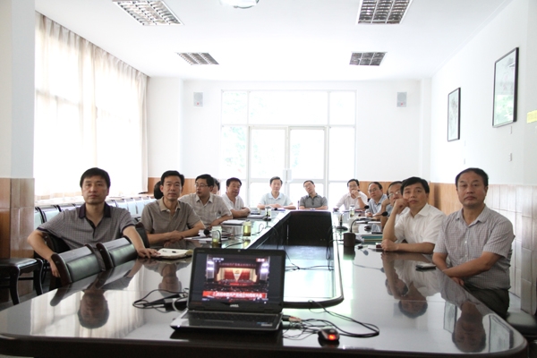 学院领导、各职能部门负责人在第一会议室收看了大会直播。各院系组织教师、学生在办公室收看了现场直播。部分学生还在餐厅观看了直播。