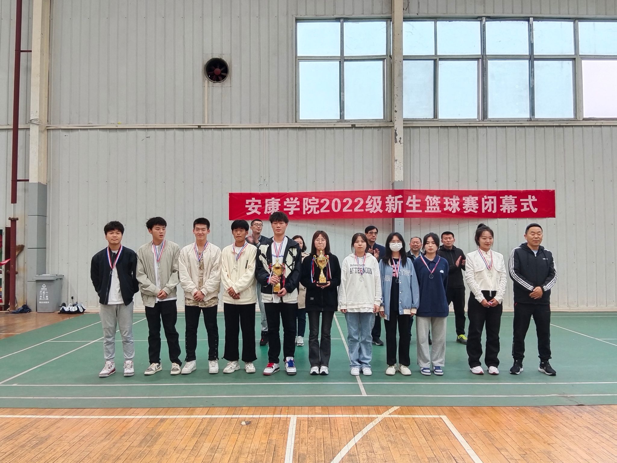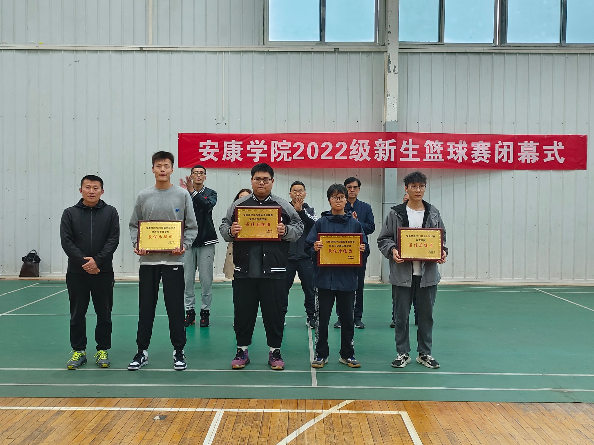 5月9日下午,Beat3652022级新生篮球赛闭幕式在江南校区体育馆二楼举行。学工部、保卫处、团委等部门负责同志、体育学院相关领导以及各二级学院篮球代表队参加了闭幕式。