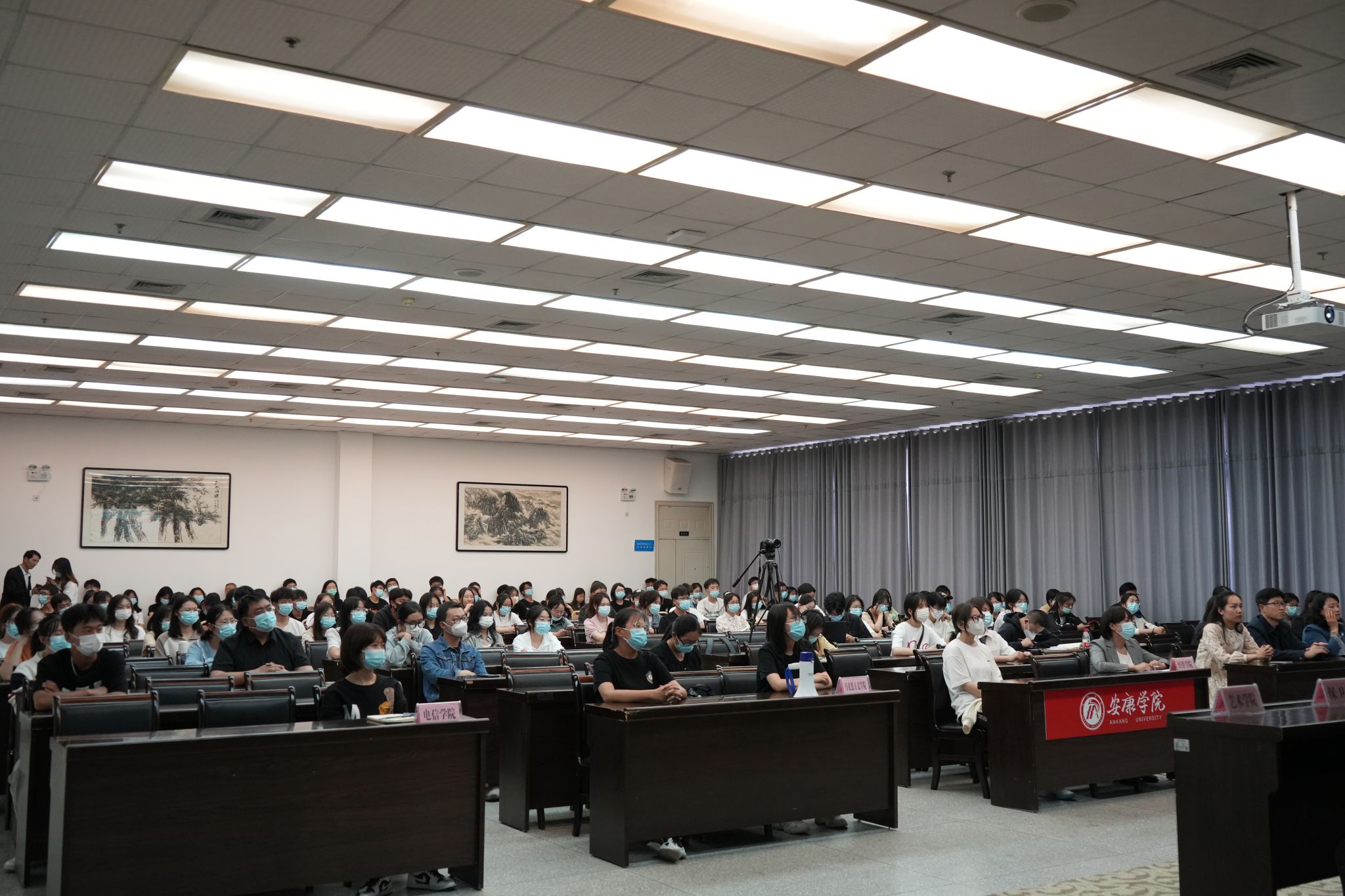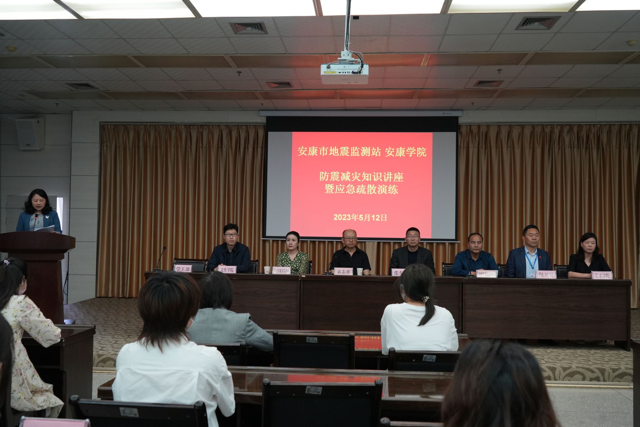 Beat365党委委员、副校长张东红,中国地震局地震现场灾害评估协调专家组研究员袁志祥、安康市地震监测站副站长张瑞、汉滨区地震监测站站长郑欢,Beat365保卫处、文传学院、艺术学院负责人及各二级学院师生代表120余人在主会场参加活动。