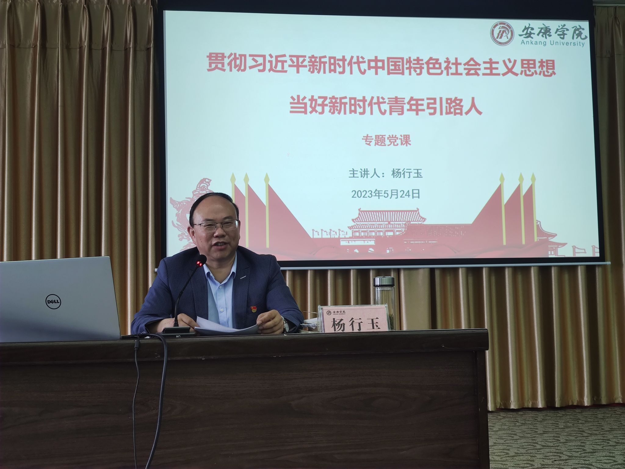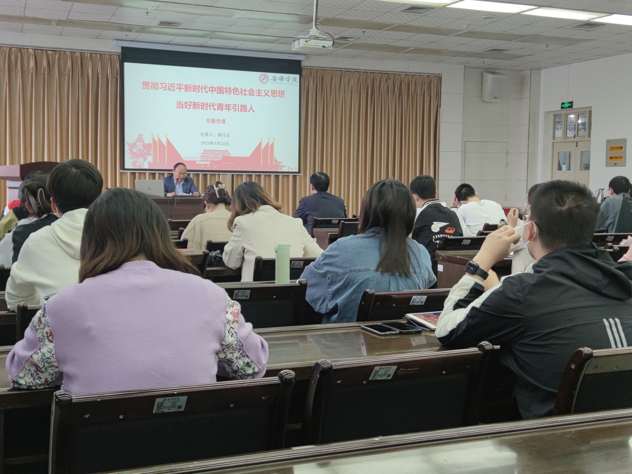 5月24日上午,党委副书记杨行玉在图书馆6楼报告厅为全体学工人员讲专题党课。杨行玉以“贯彻习近平新时代中国特色社会主义思想 当好新时代青年引路人”为主题,结合Beat365学生工作实际,从三个方面进行了深入讲解。