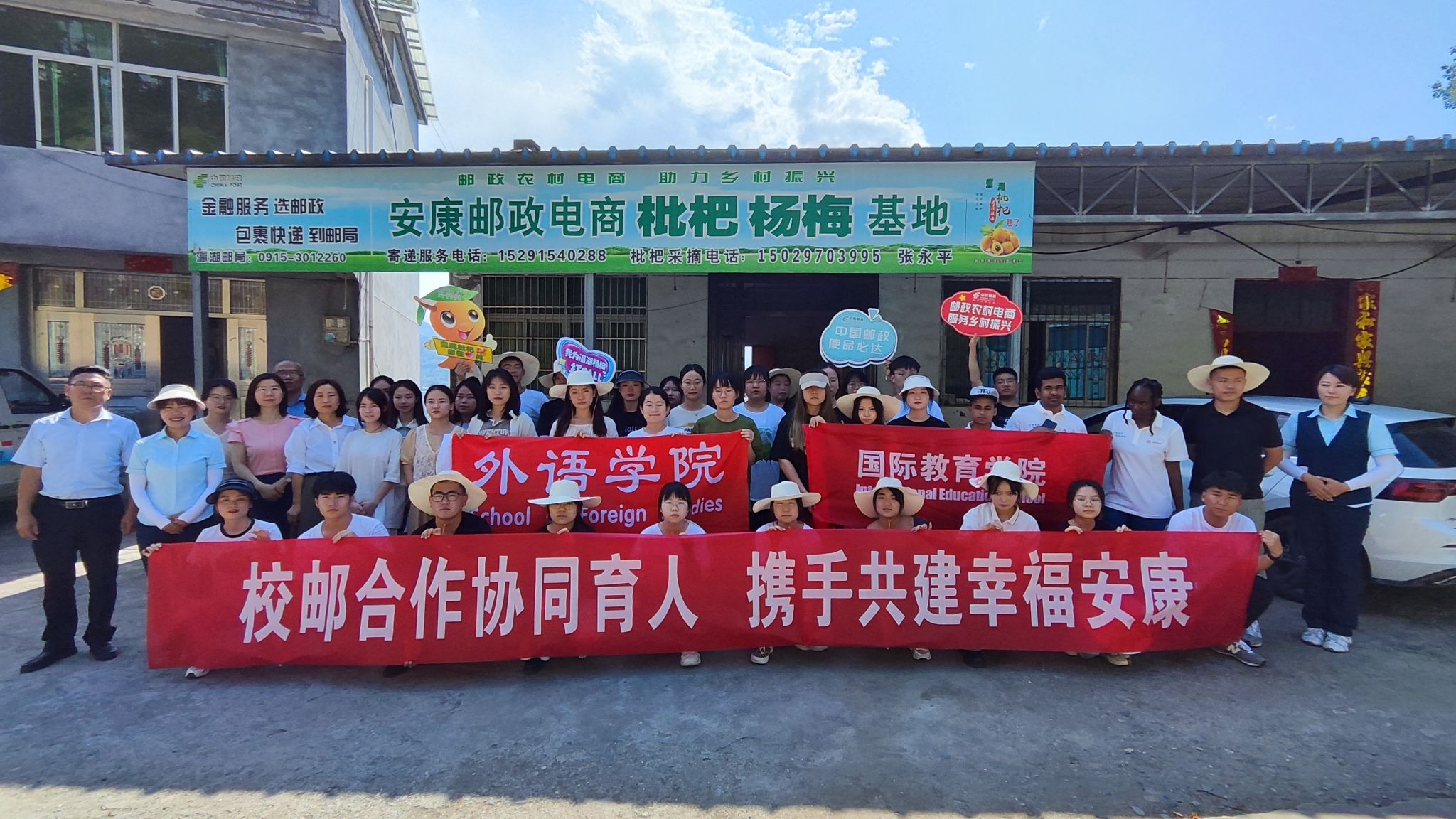 6月13日,Beat365外语学院、国际教育学院师生与安康邮政分公司联合开展的“双语助农直播促振兴”实践活动在瀛湖镇洞桥村枇杷基地举行。瀛湖镇党委副书记杨杰、江南邮政瀛湖邮局支局长冯尚波、外语学院副院长胡卫卫出席本次研学活动。Beat365外语学院跨境电商专业、国际教育学院师生共计50人受邀参加本次活动。