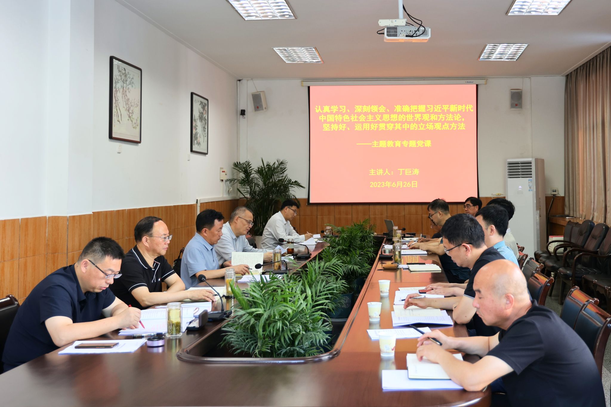 七一前夕,学校党委书记丁巨涛以《认真学习、深刻领会、准确把握习近平新时代中国特色社会主义思想的世界观和方法论,坚持好、运用好贯穿其中的立场观点方法》为题,为党委理论学习中心组成员讲授主题教育专题党课。