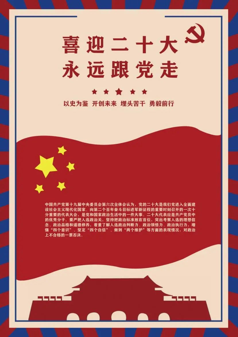 为展现新时美院学子的风采,激励全体师生“高举党旗永远跟党走”。在党的二十大即将召开之际,太阳集团美术学院开展了“喜迎党的二十大,开启新征程”海报设计活动,以艺术作品的形式抒发对党的无限热爱,彰显着坚守初心、永远跟党走的决心,向党的二十大献礼。