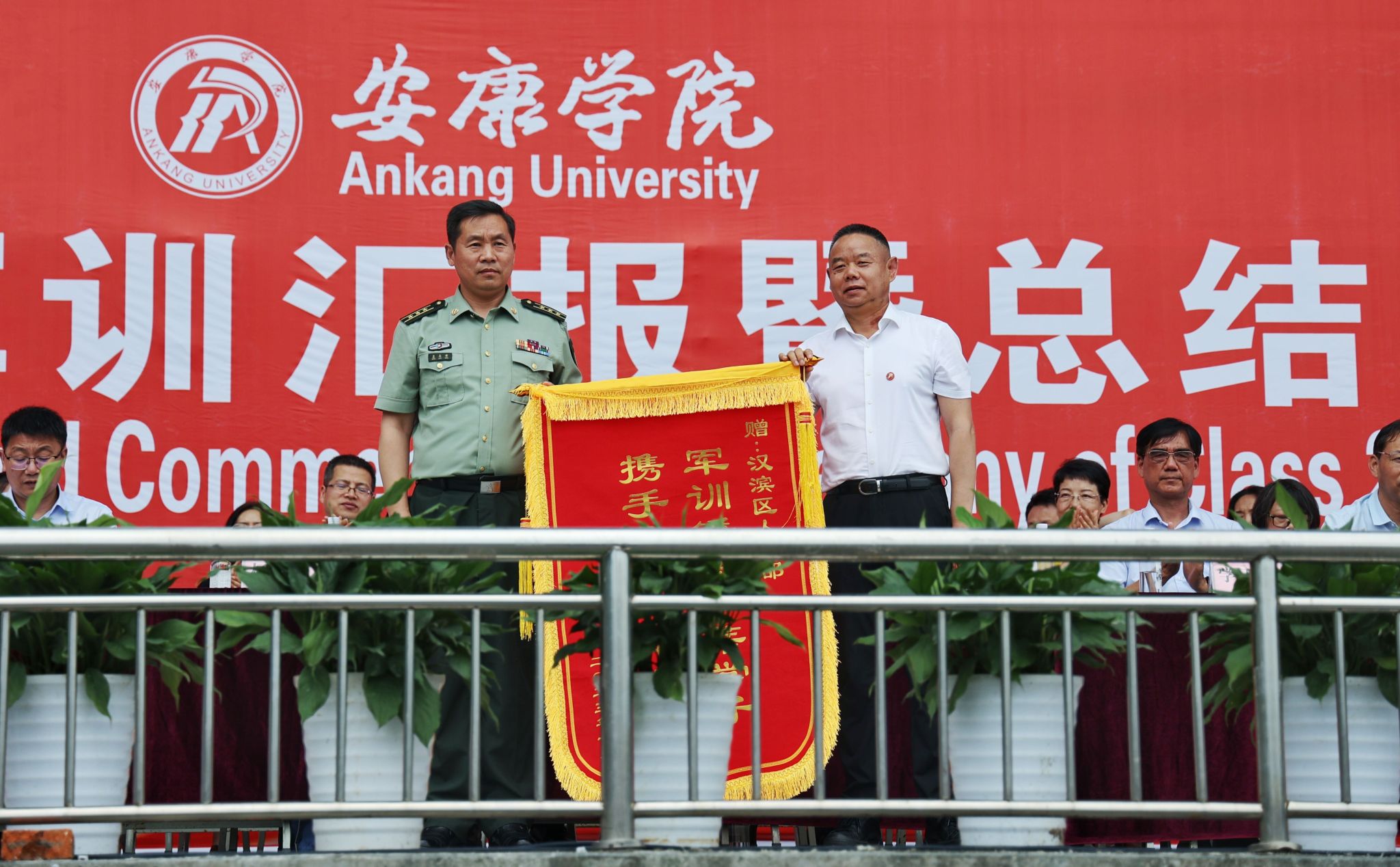 安永强代表学校向协调Beat365本次军训的汉滨区人武部赠送了锦旗。