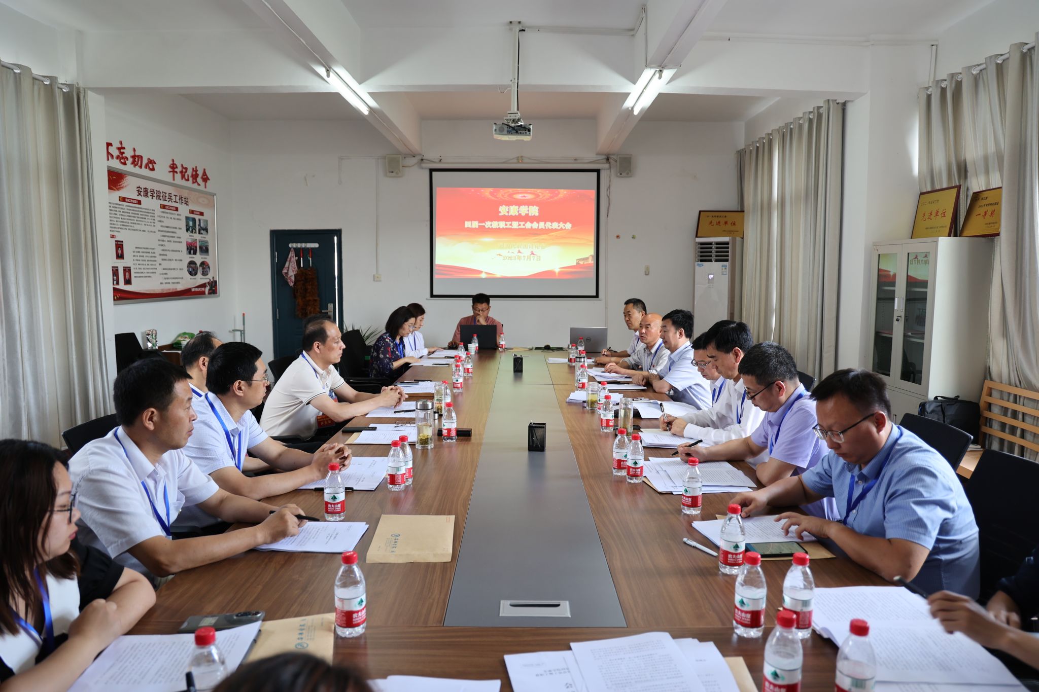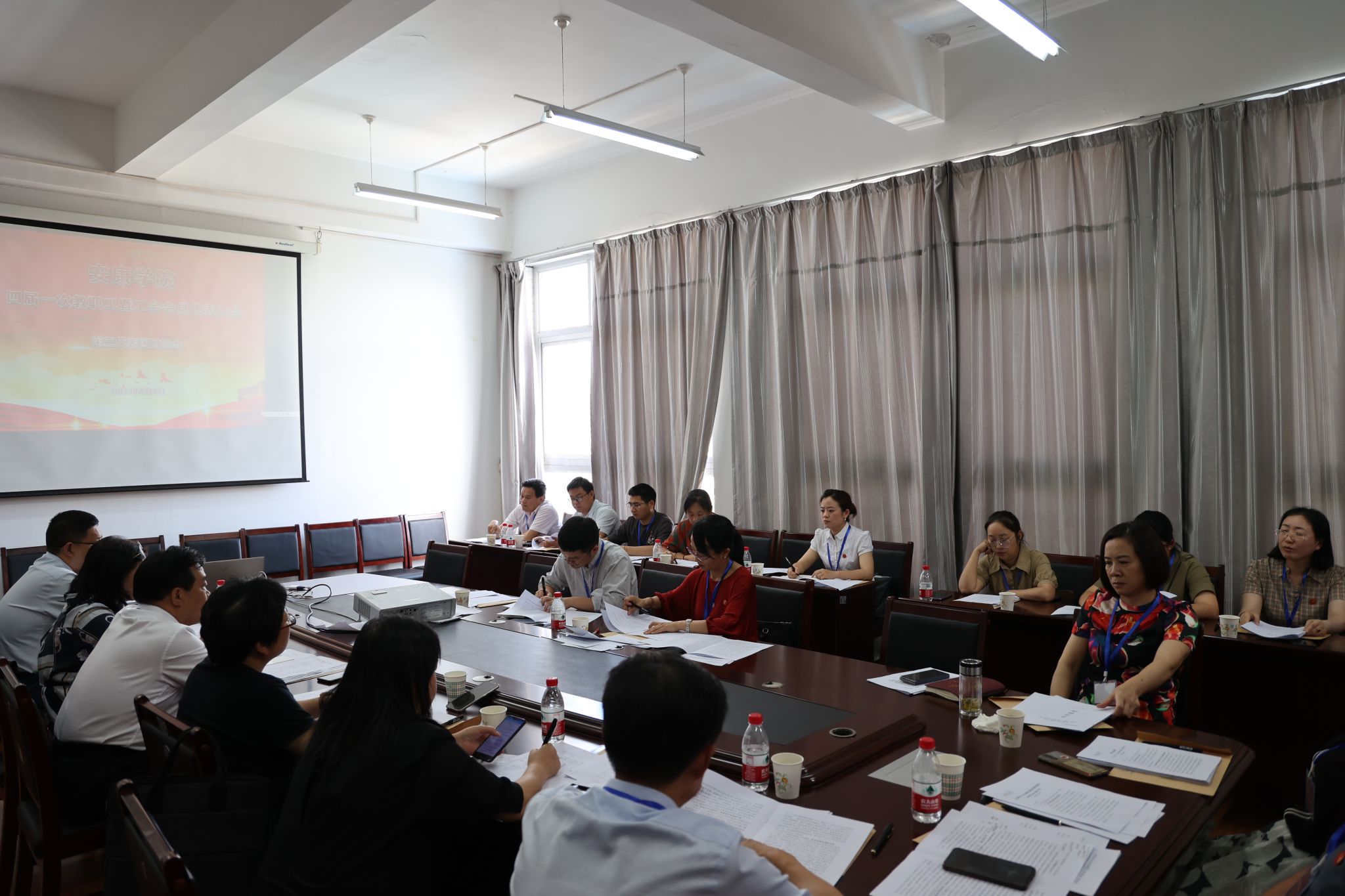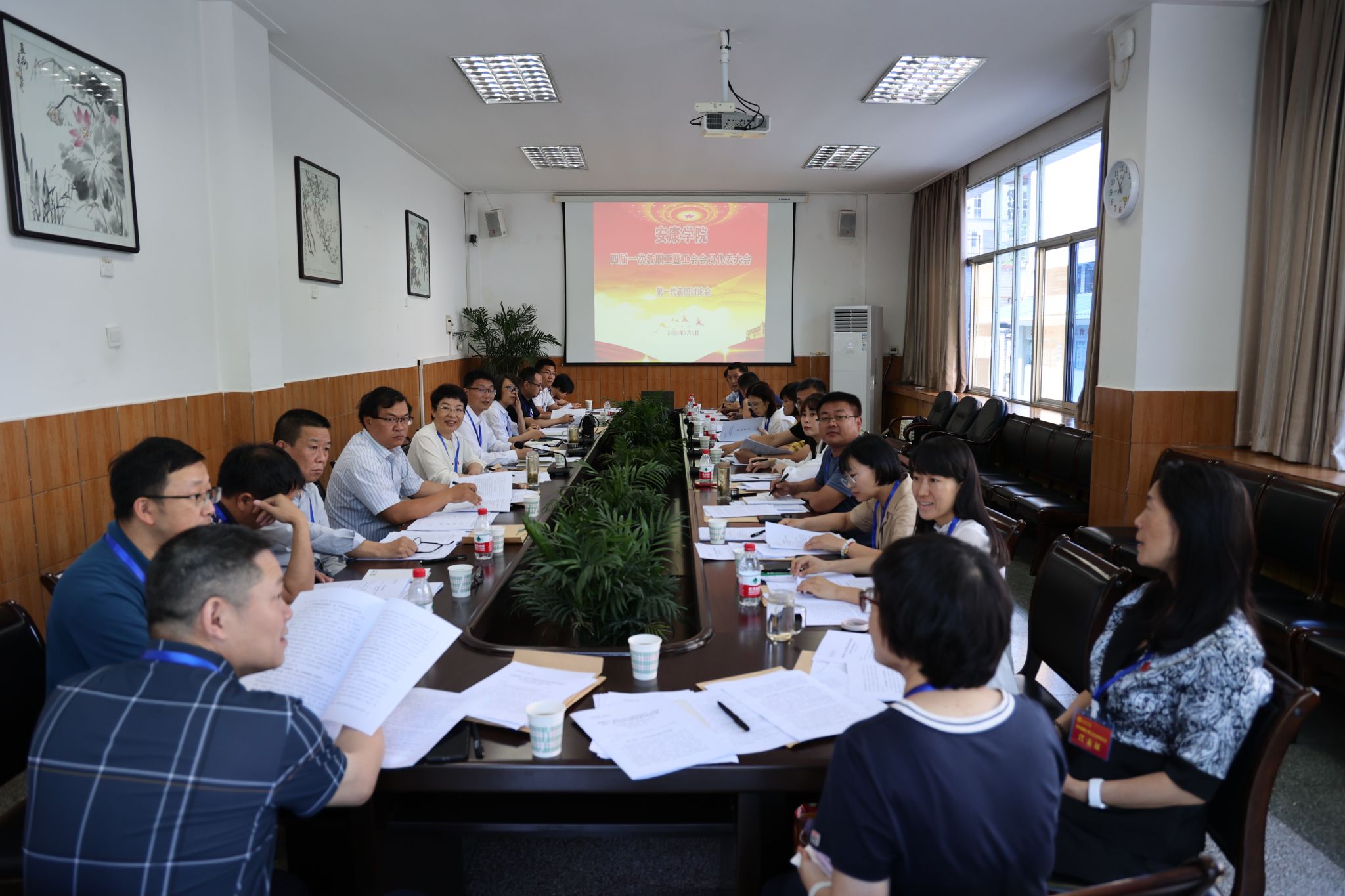 预备会议结束后,四届一次教职工暨工会会员代表大会主席团第一次会议在陕南民间文化研究中心会议室召开,会议由丁巨涛主持。会议审议通过了四届一次教职工暨工会会员代表大会议程,确定了大会执行主席及主持人名单。