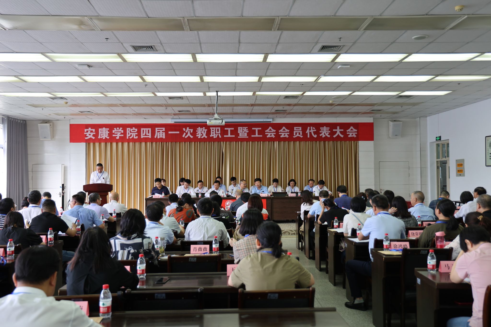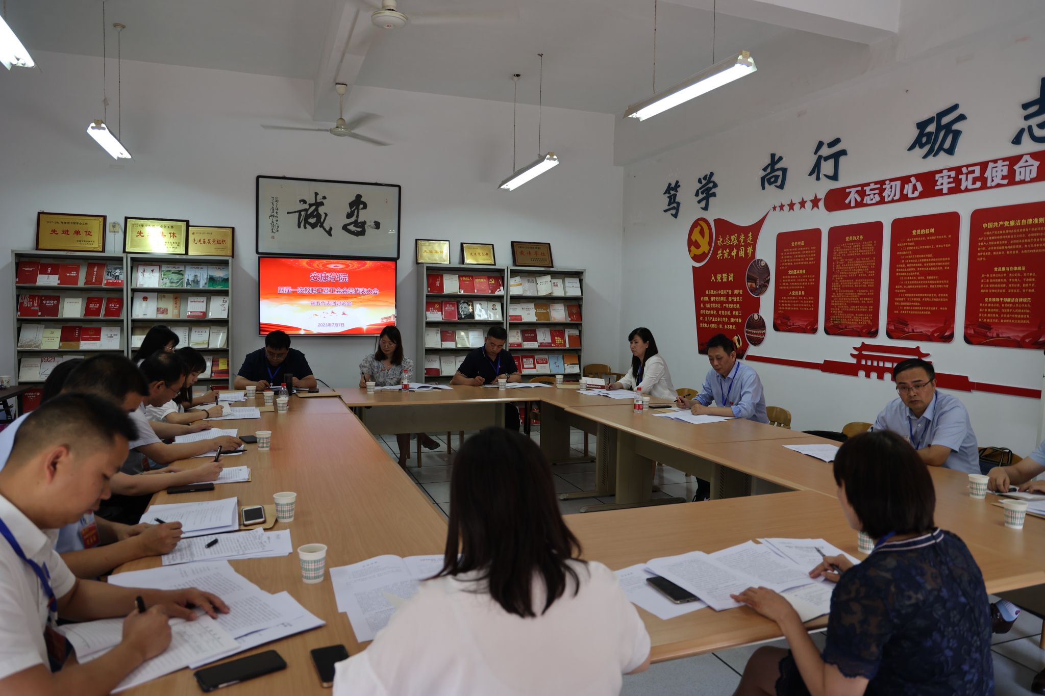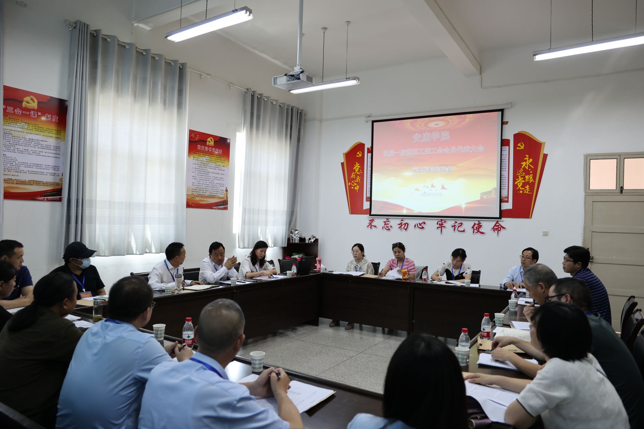预备会议结束后,四届一次教职工暨工会会员代表大会主席团第一次会议在陕南民间文化研究中心会议室召开,会议由丁巨涛主持。会议审议通过了四届一次教职工暨工会会员代表大会议程,确定了大会执行主席及主持人名单。