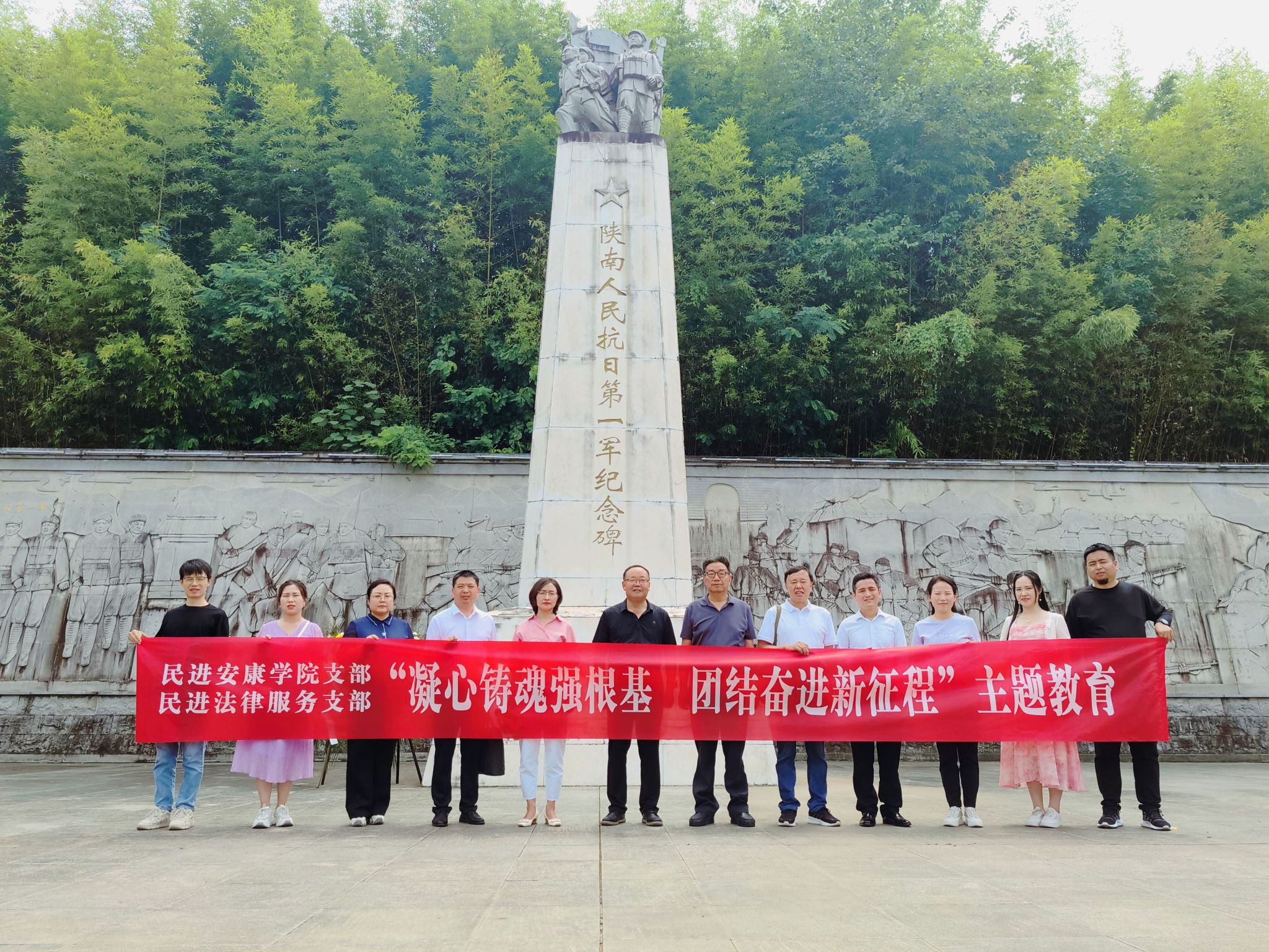 随后,会员们又来到位于汉阴县龙岗公园的陕南人民抗日第一纪念碑。通过观看陕南抗日第一军的抗战事迹简介,大家追忆了先辈们为革命事业抛头颅、洒热血的峥嵘岁月,对革命前辈英勇战斗、不屈不挠的奉献精神有了更深的感悟。