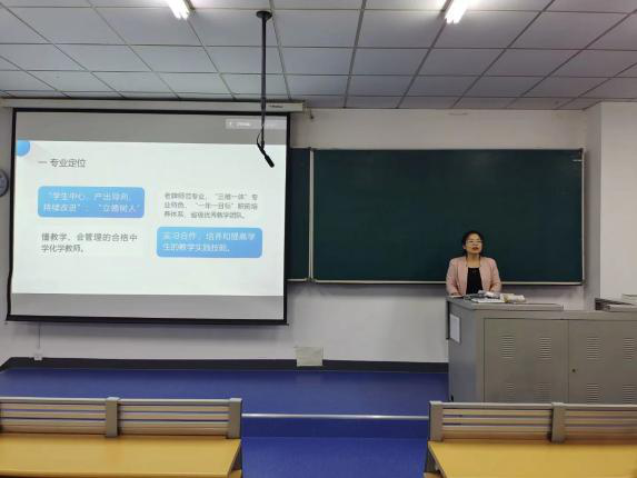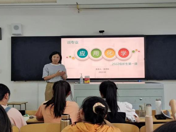 教研室主任董翠芳、王洪玲、李煦、王剑分别为化学专业、应用化学专业、化学工程与工艺专业、环境工程专业四个专业的新生做了相关专业介绍。四位老师详解了各专业人才培养方案,让同学们对专业有了深入了解,增强了专业意识,强化了专业归属感。
