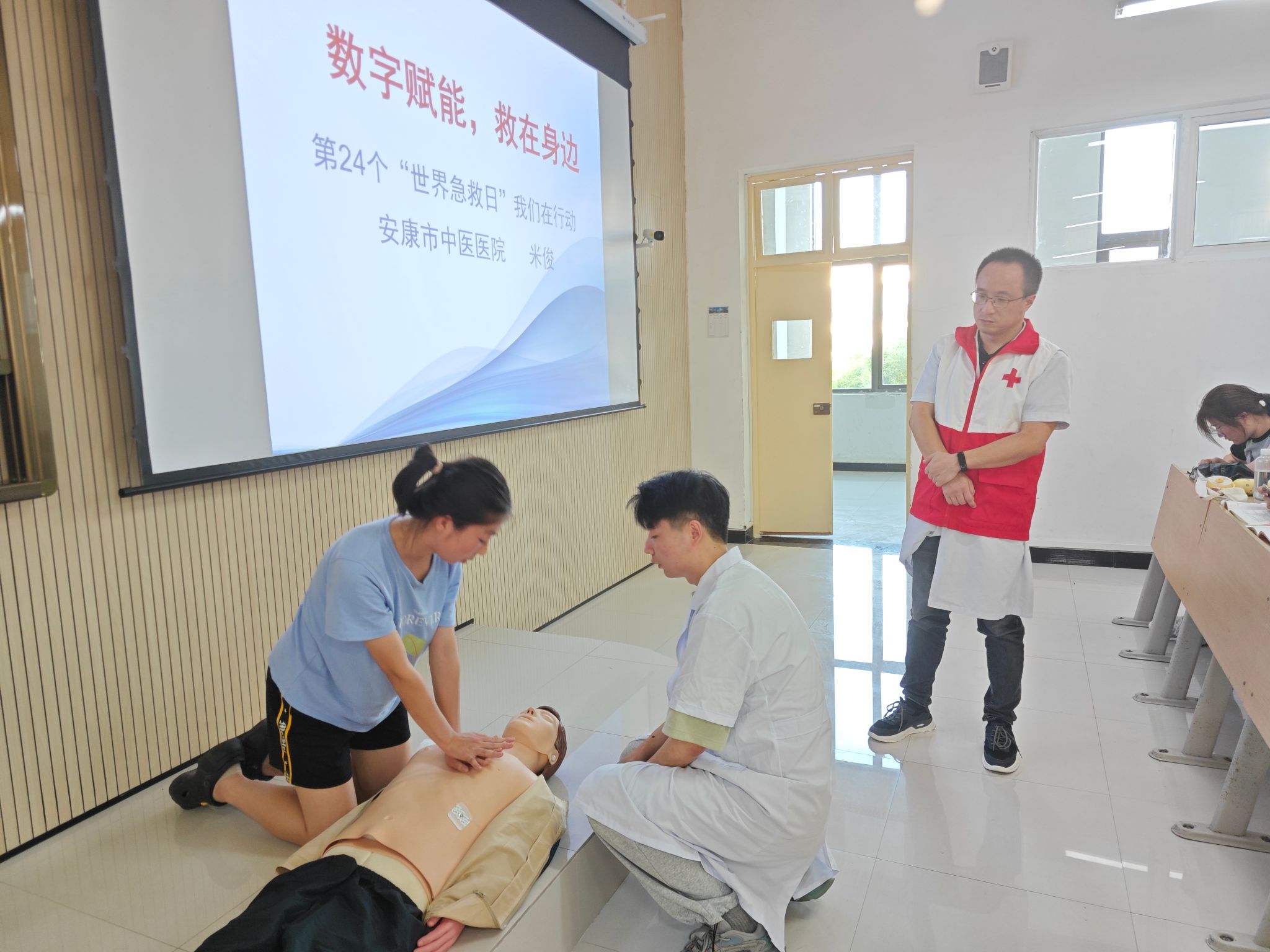 在第24个“世界急救日”来临之际,Beat365联合安康市中医医院于9月7日在江北校区开展了以“数字赋能‘救'在身边”为主题的“世界急救日”宣讲活动,200余名无课师生聆听了讲座。