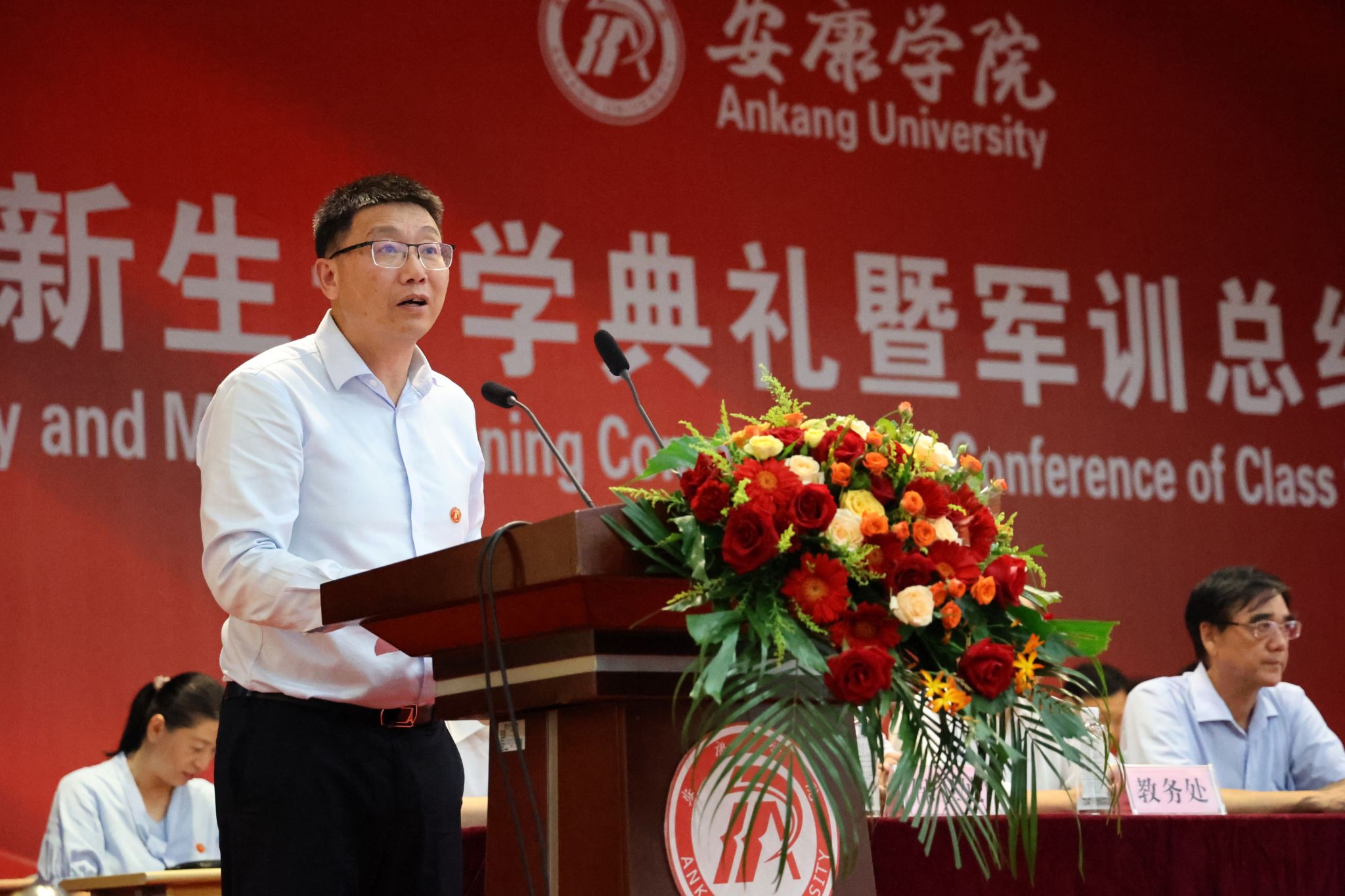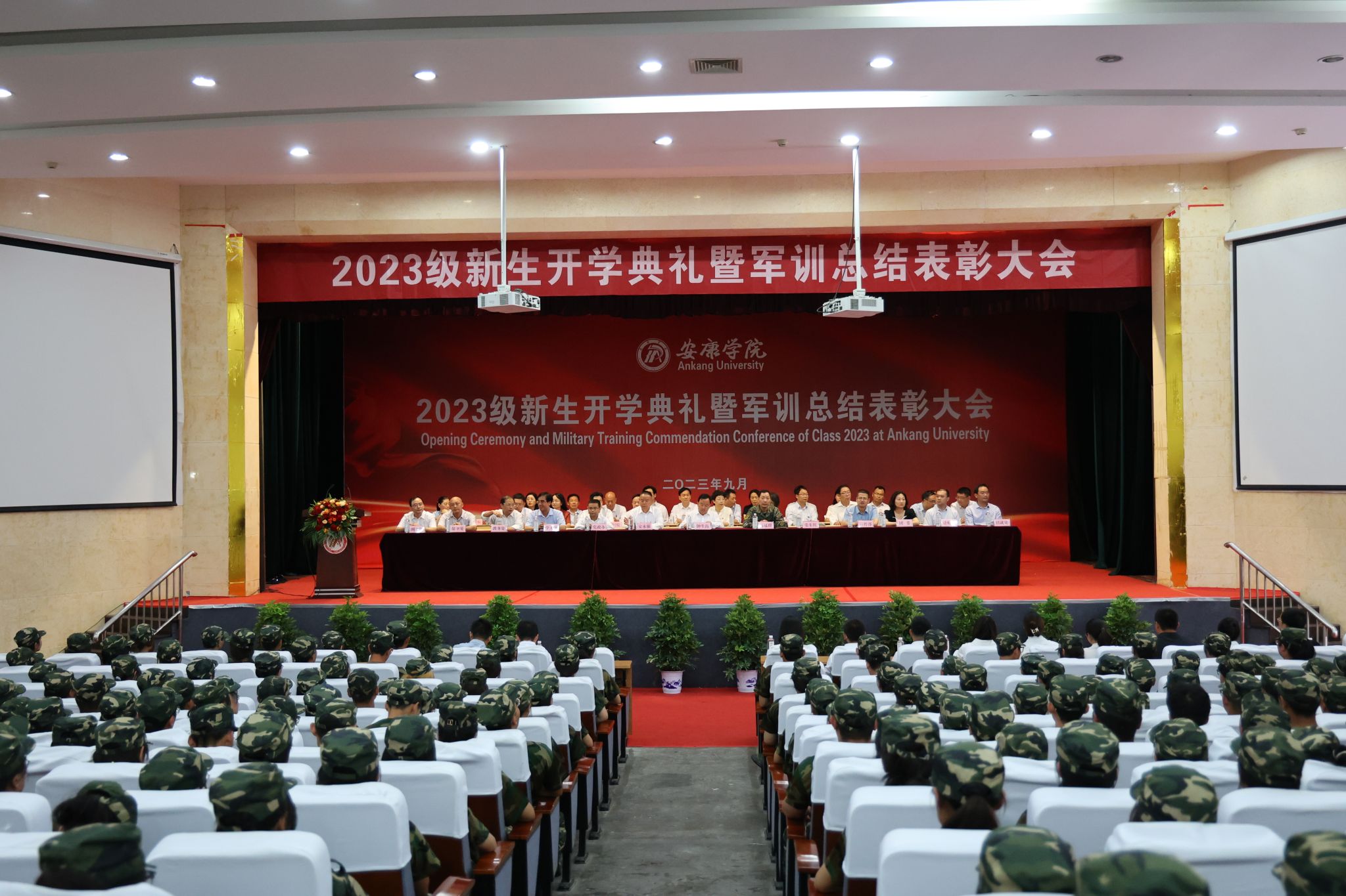 9月11日,Beat3652023级新生开学典礼暨军训总结表彰大会在江南校区大礼堂隆重举行。学校校长钟生海,党委副书记、纪委书记、监察专员安永强,副校长张东红,武警安康支队中校副政治委员马冠群,各二级学院院长、党总支书记、相关职能部门负责人等出席大会,大会由张东红主持。