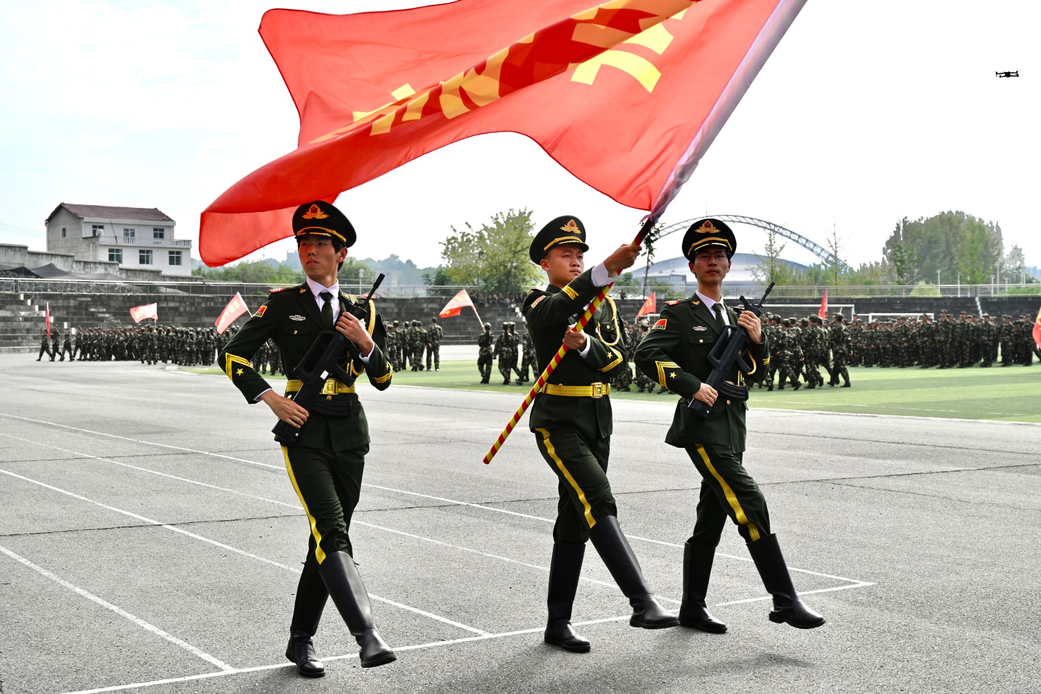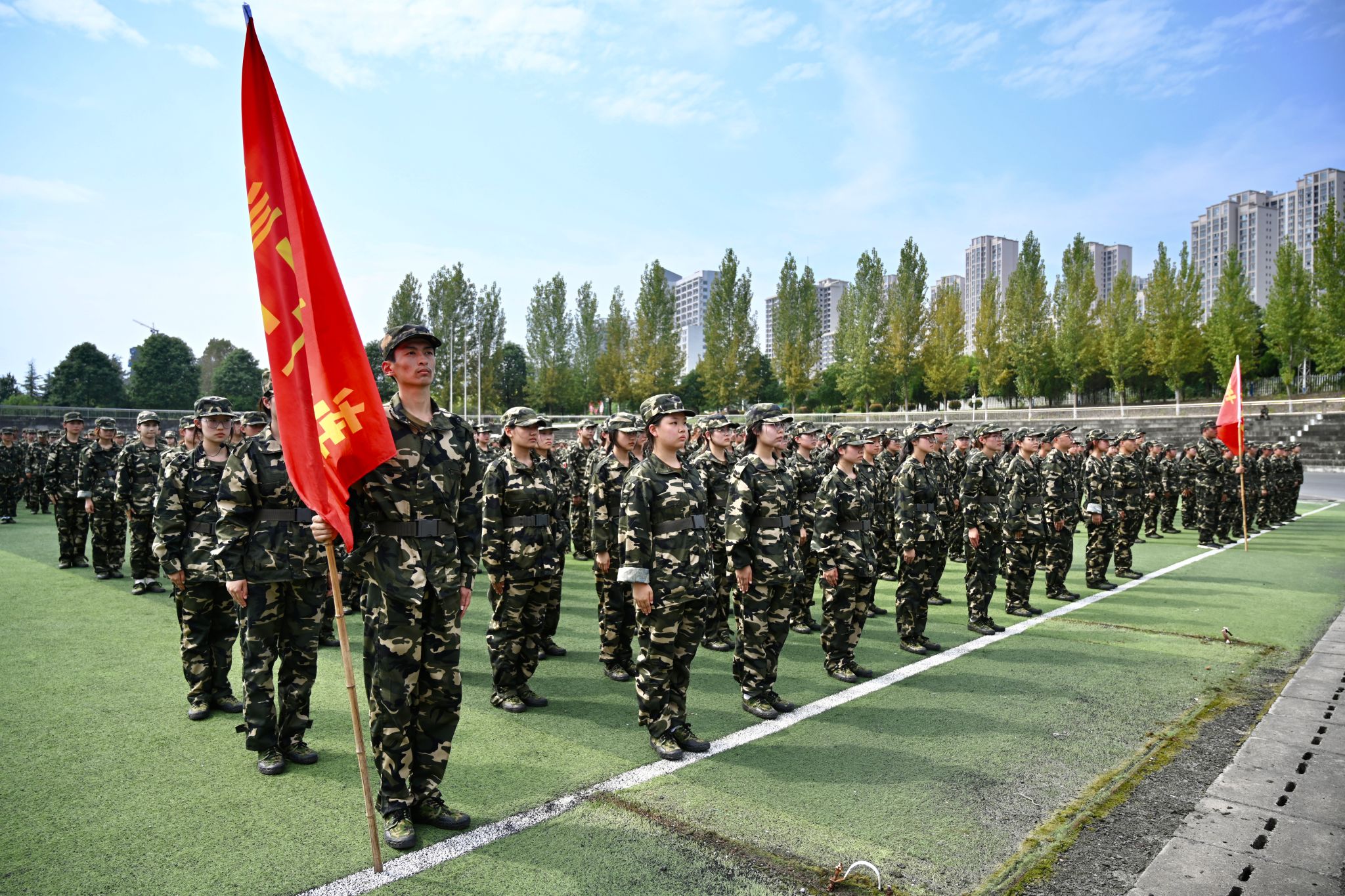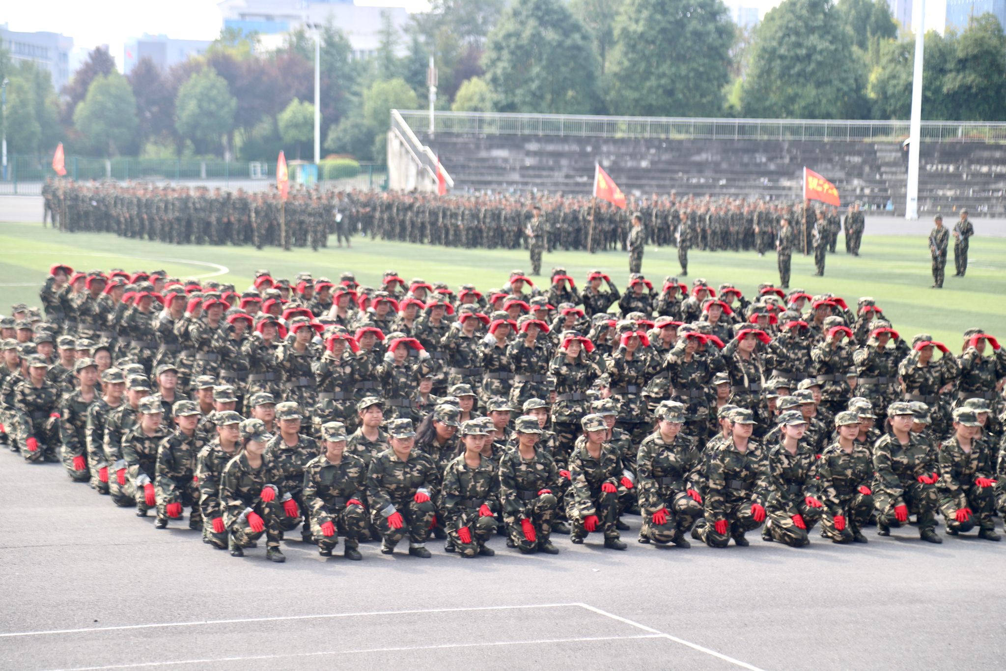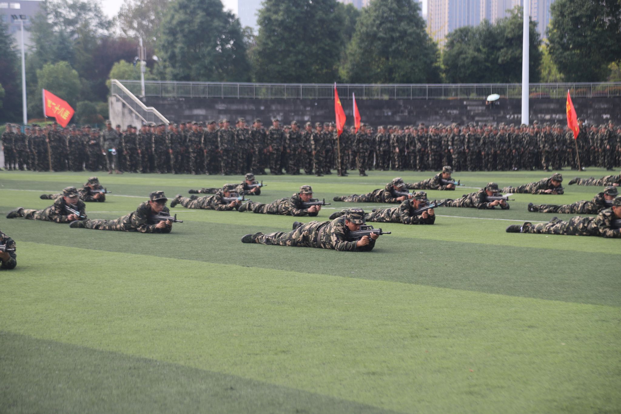 在庄严的国歌声中,大会拉开帷幕。会上,安永强宣读了表彰决定。13个连队被评为“军训先进集体”,13名辅导员被评为“优秀指导员”,89名学生被评为“军训先进个人”。