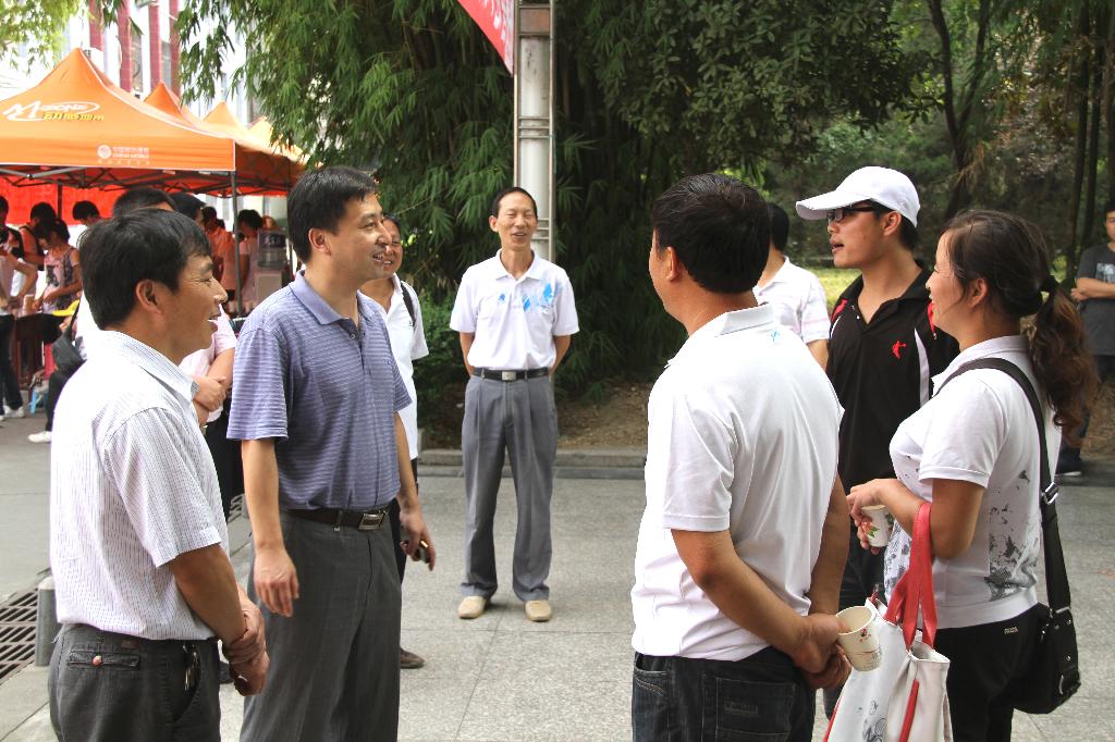 火车站、汽车站、各系迎新点、各宿舍楼下,随处都可以见到迎新志愿者的身影。接过新生手中重重的行囊,带领他们到各系迎新点注册,领取信息卡、军训服,为旅途劳累的家长打上一杯水,在车流川息不停的校门口当起交通员,一个手势,一个眼神,都展现了迎新志愿者的责任心和爱心。