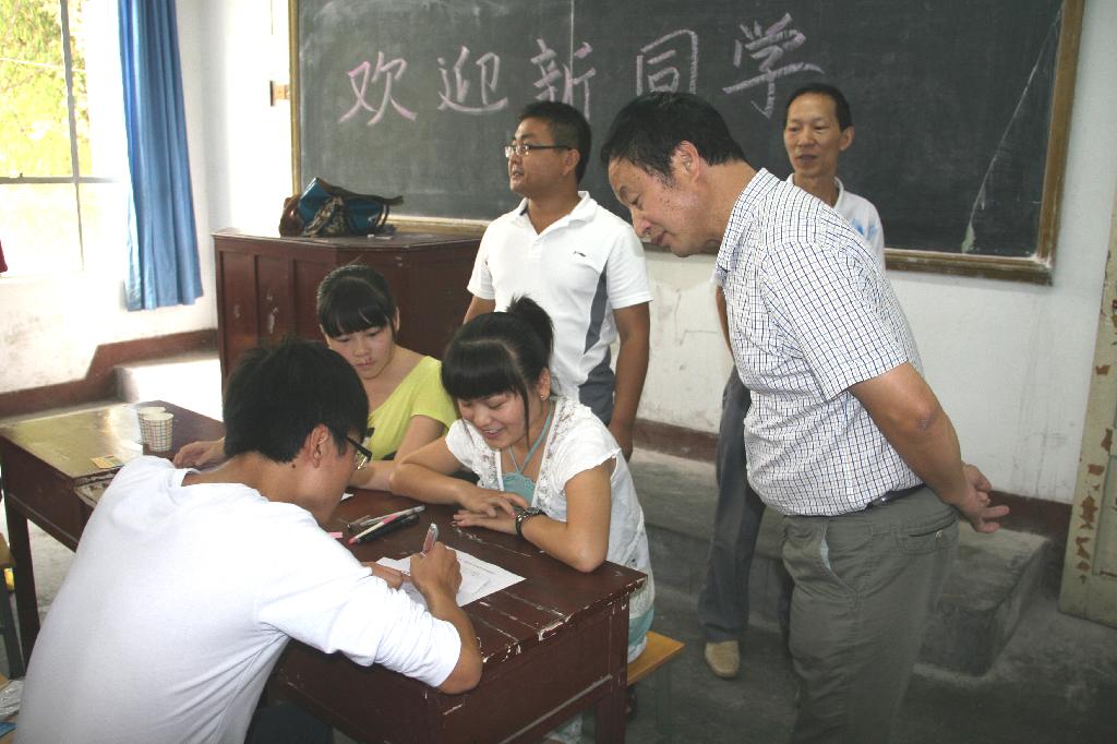 彩球飞扬,横幅高挂,校园弥漫着喜迎新生的热烈气氛。“相约安康,放飞梦想”、“你的到来,我的欢乐”、“接过你的行囊,我们就是一家人”等热情洋溢的条幅,让人温馨。“报到指南”、“校园平面图”、“明白卡”等让报到流程一目了然,“新生咨询处”、“绿色通道”、“医疗服务站”、“家长休息区”等给新生和家长提供了极大的方便。