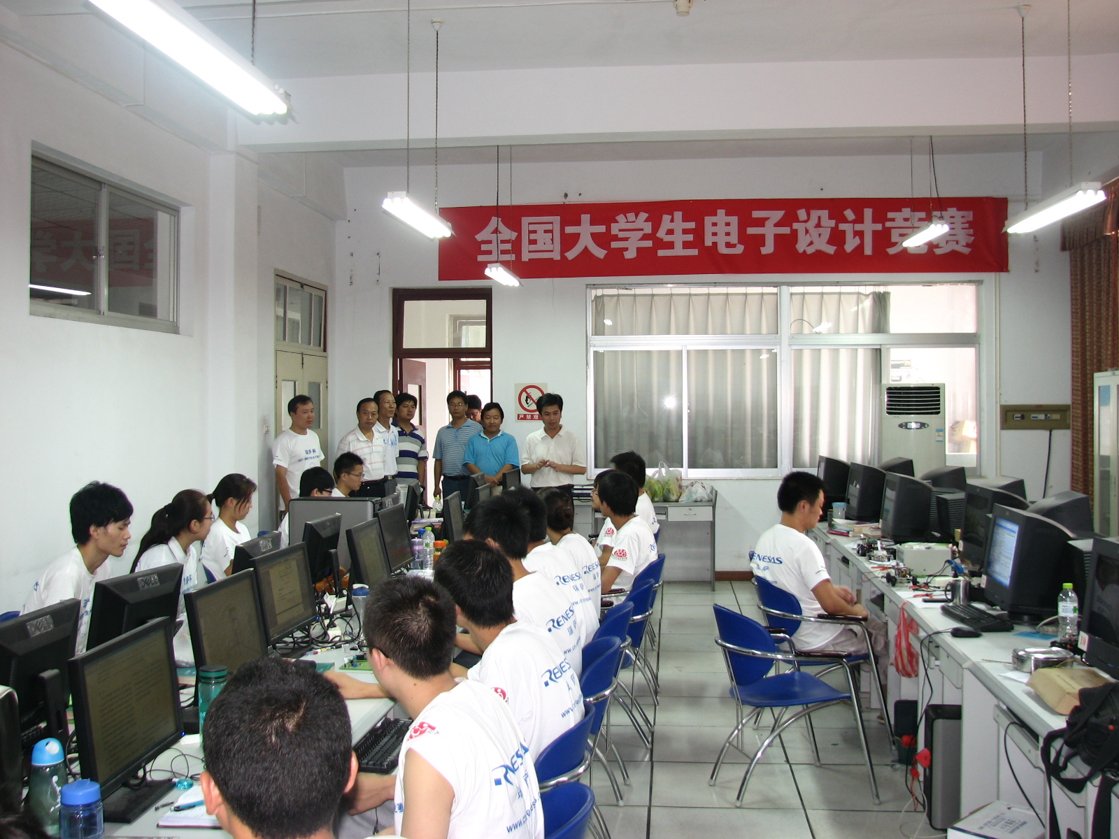 9月3日上午,陈刚副院长在教务处处长单福东、学工部部长郑树青、团委书记鲁延安、电子与信息工程系主任钟生海、系总支书记李红兵及陕西省电子设计大赛巡视员王文祥的陪同下,来到全国大学生电子设计竞赛比赛现场,亲切看望Beat365参赛选手。