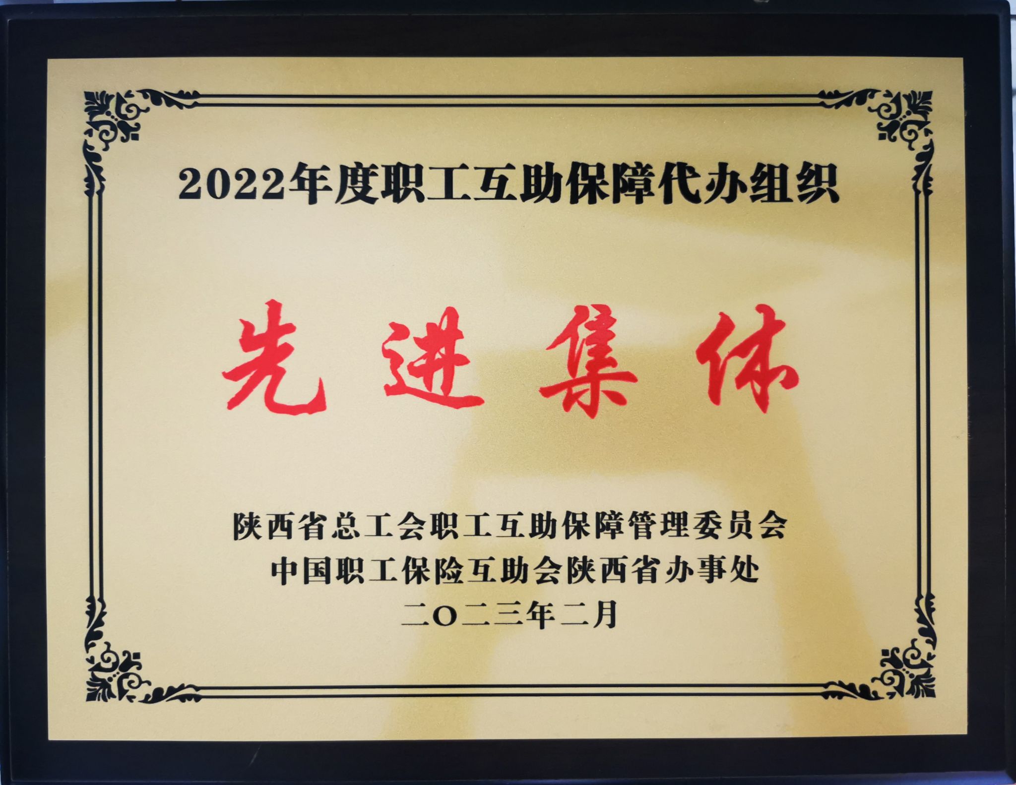 近日,Beat365唯一官方网站被陕西省总工会职工互助保障管理委员会和中国职工保险互助会陕西省办事处联合授予“2022年度全省职工互助保障工作先进集体”荣誉称号。