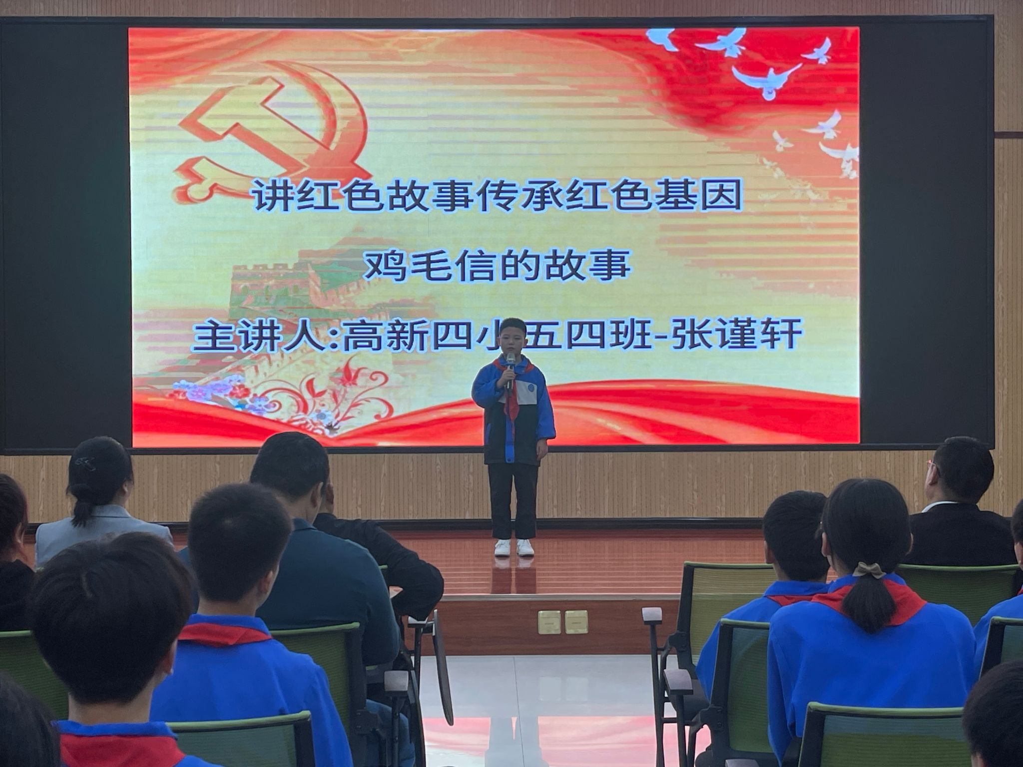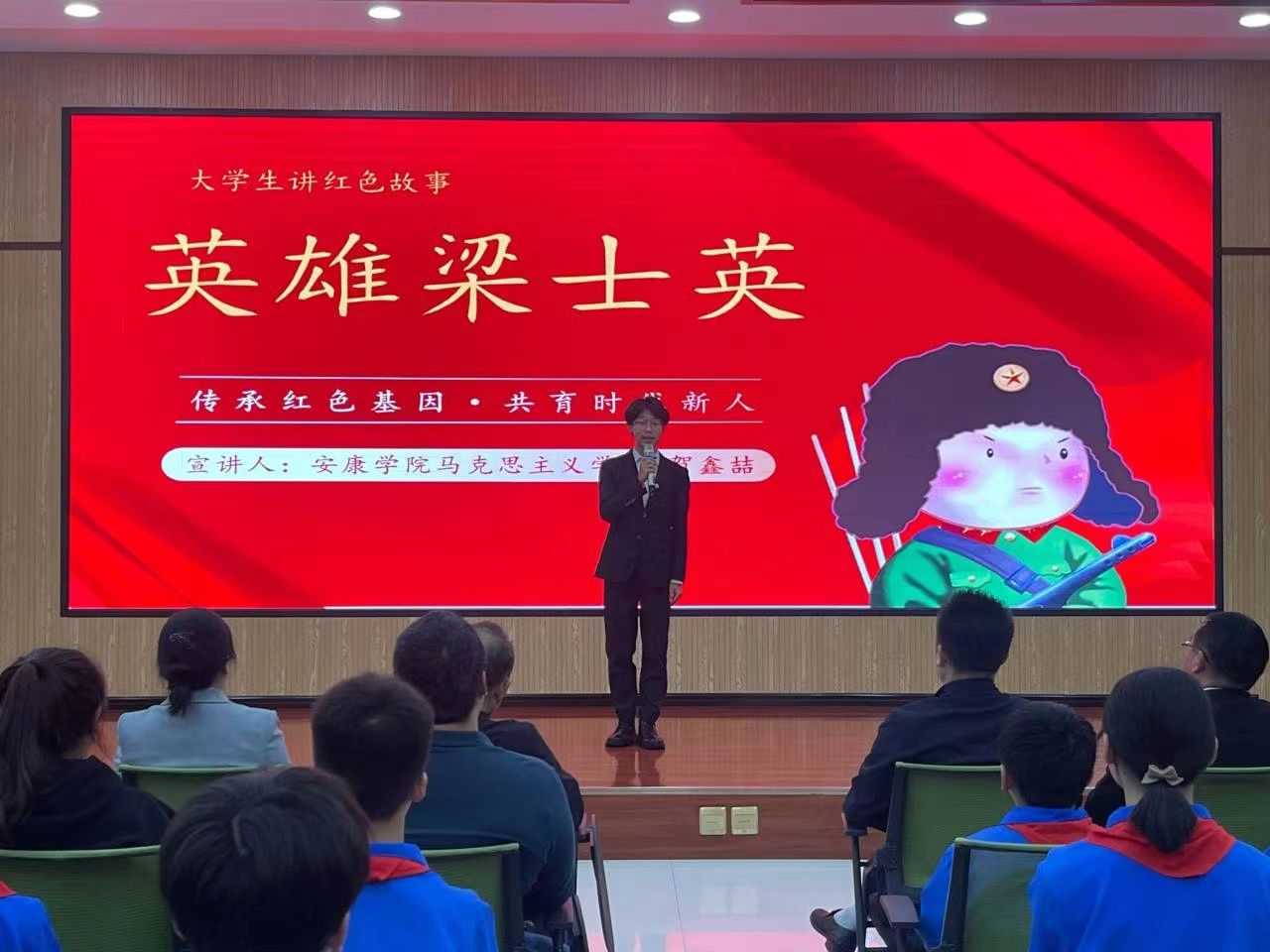 在红色故事分享环节里,高新四小五(四)班学生张谨轩、刘林轩分享了“鸡毛信的故事”“为中华之崛起而读书”,Beat365思想政治教育专业学生贺鑫喆、杜心雨分享了“英雄梁士英”“一支钢笔背后的红色记忆”,大家从一个个红色故事的讲述中追溯红色血脉,重温峥嵘岁月,感悟信仰之源。随后,全体师生共同朗诵诗歌《我们爱祖国》,共庆祖国生日,传承红色基因,争做时代新人。
