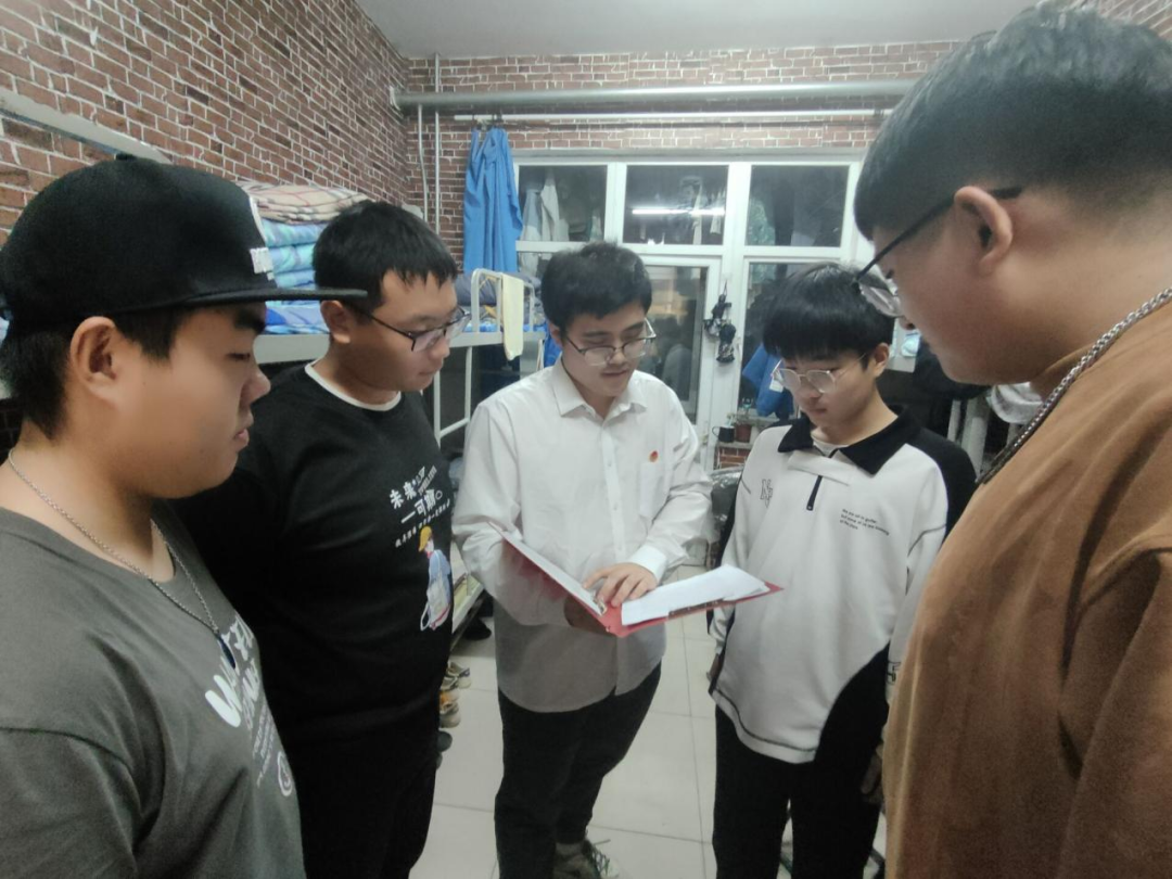入党积极分子发挥模范带头作用,先学一步、深学一层,在宿舍里,以亲切的语言、生动的故事宣讲党的二十大精神。他们结合自身的成长经历,勉励学弟学妹们、舍友同学们牢记习近平总书记的嘱托,坚定理想信念,树立远大理想,练就过硬本领,践行“请党放心,强国有我”的青春誓言,为民族复兴贡献新时代青年的青春力量。宣讲深受同学们的欢迎。