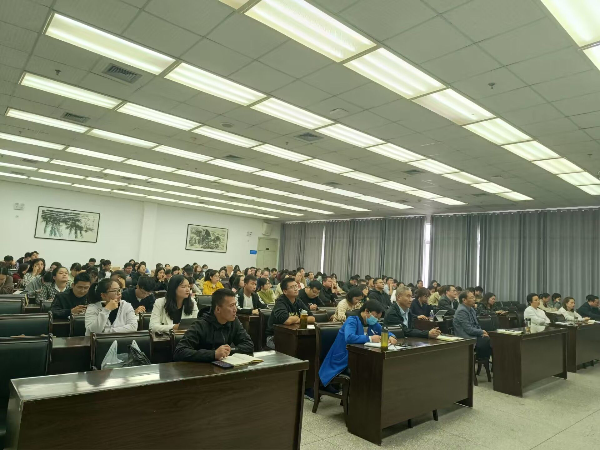 10月8日下午,学校在江南校区图书馆六楼报告厅组织开展了教师课堂教学能力提升第三次培训。本次培训特邀请陕西师范大学现代教学技术教育部重点实验室副主任何聚厚教授作《数字化教学转型背景下智慧教学重构设计与实践》专题报告。各二级学院教学副院长、系(教研室)主任、混合教学改革试点课程负责人及近三年入职专任教师共200余人参加了培训。培训由教务处处长汪义瑞主持。